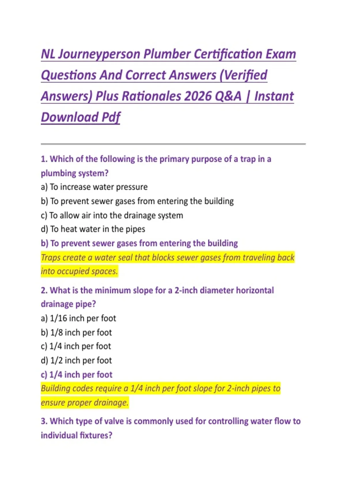 1. Which of the following is the primary purpose of a trap in a