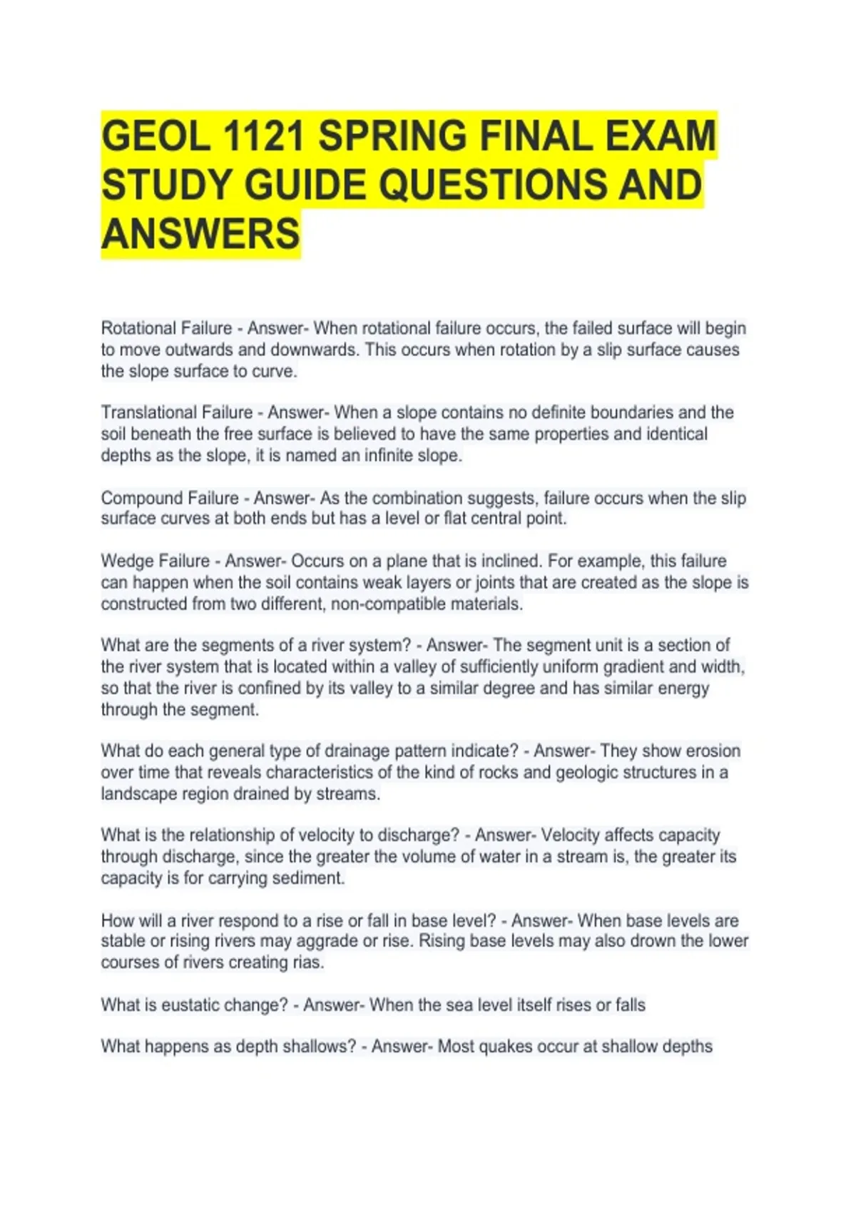 GEOL 1121 SPRING FINAL EXAM