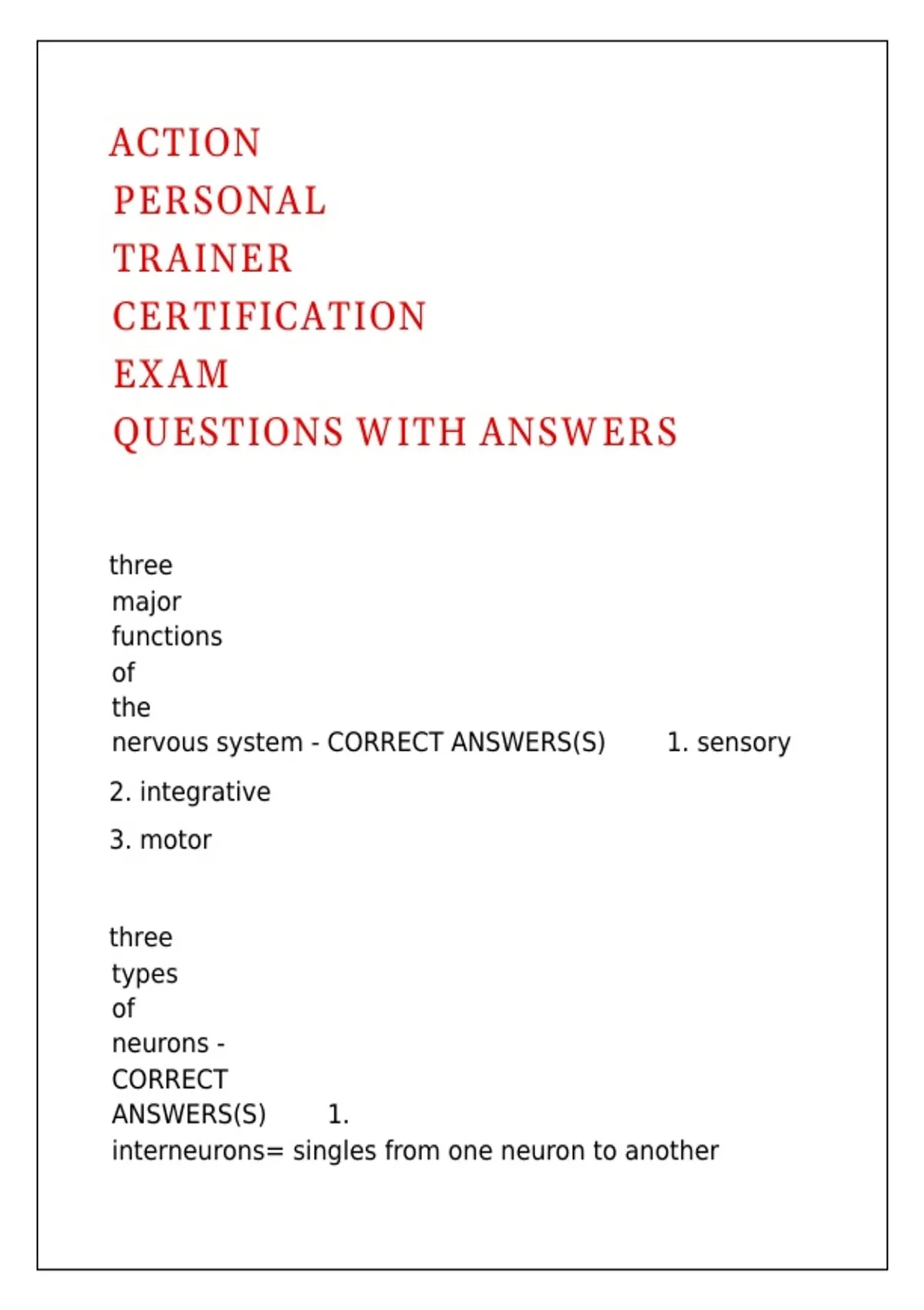 nervous system - CORRECT ANSWERS(S)✅✅1. sensory