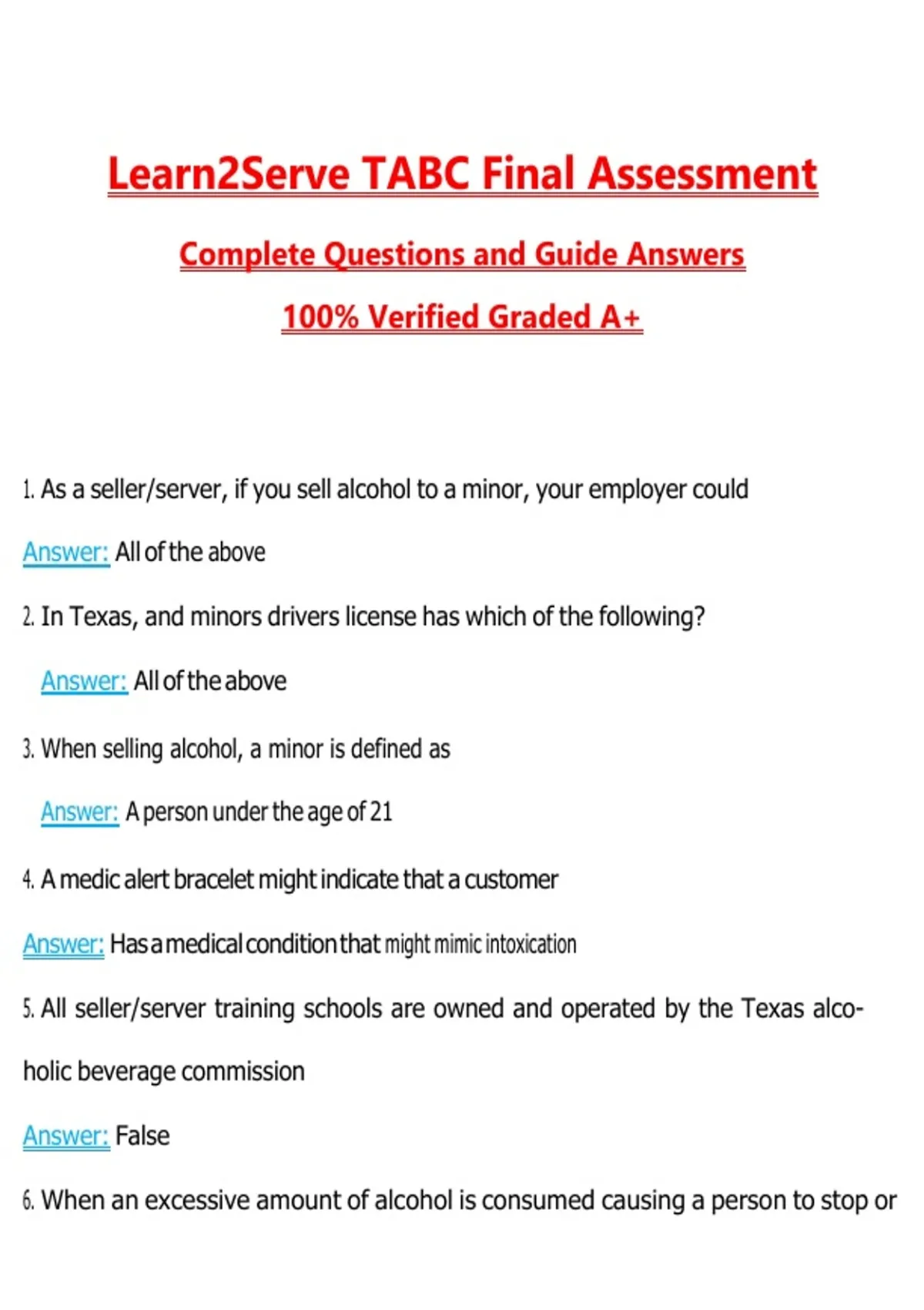 1. As a seller/server, if you sell alcohol to a minor, your employer could