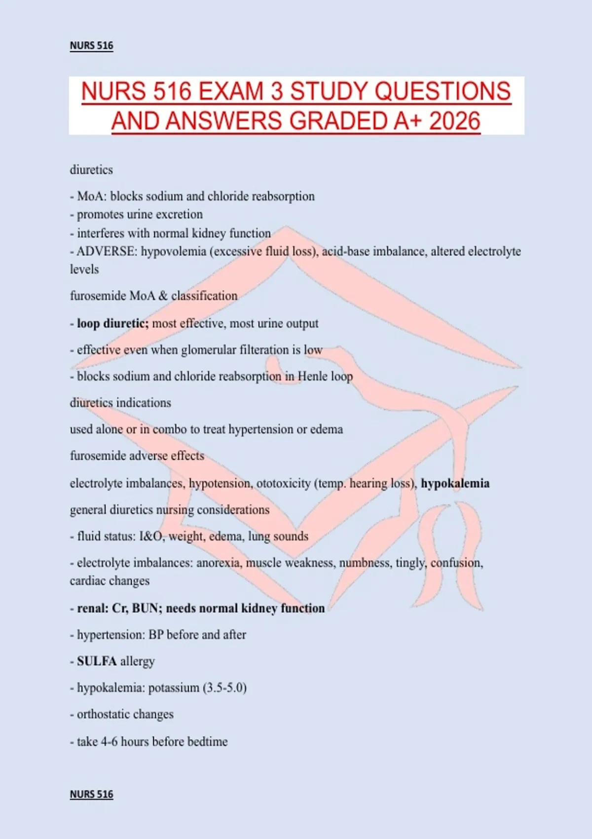 NURS 516 EXAM 3 STUDY QUESTIONS AND ANSWERS GRADED A+ 2026