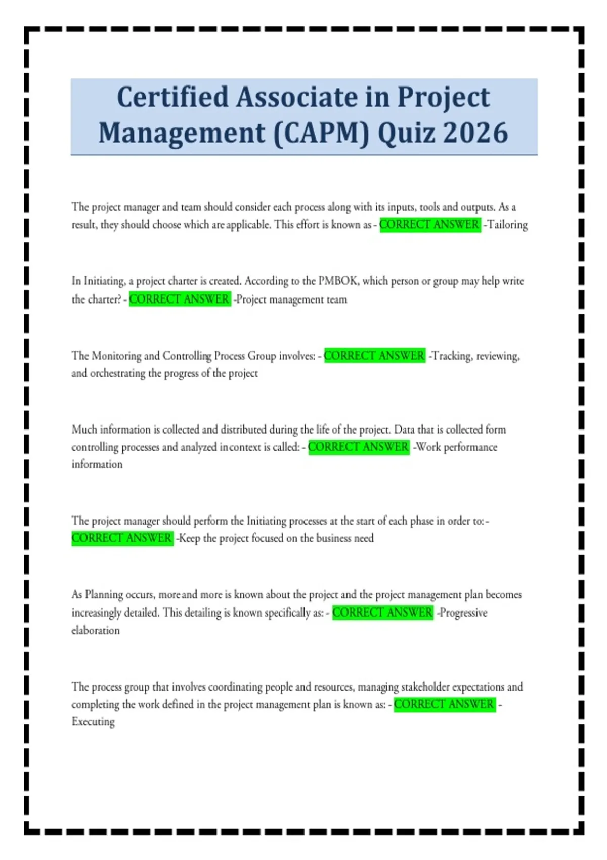 Certified Associate in Project Management (CAPM) Quiz 2026