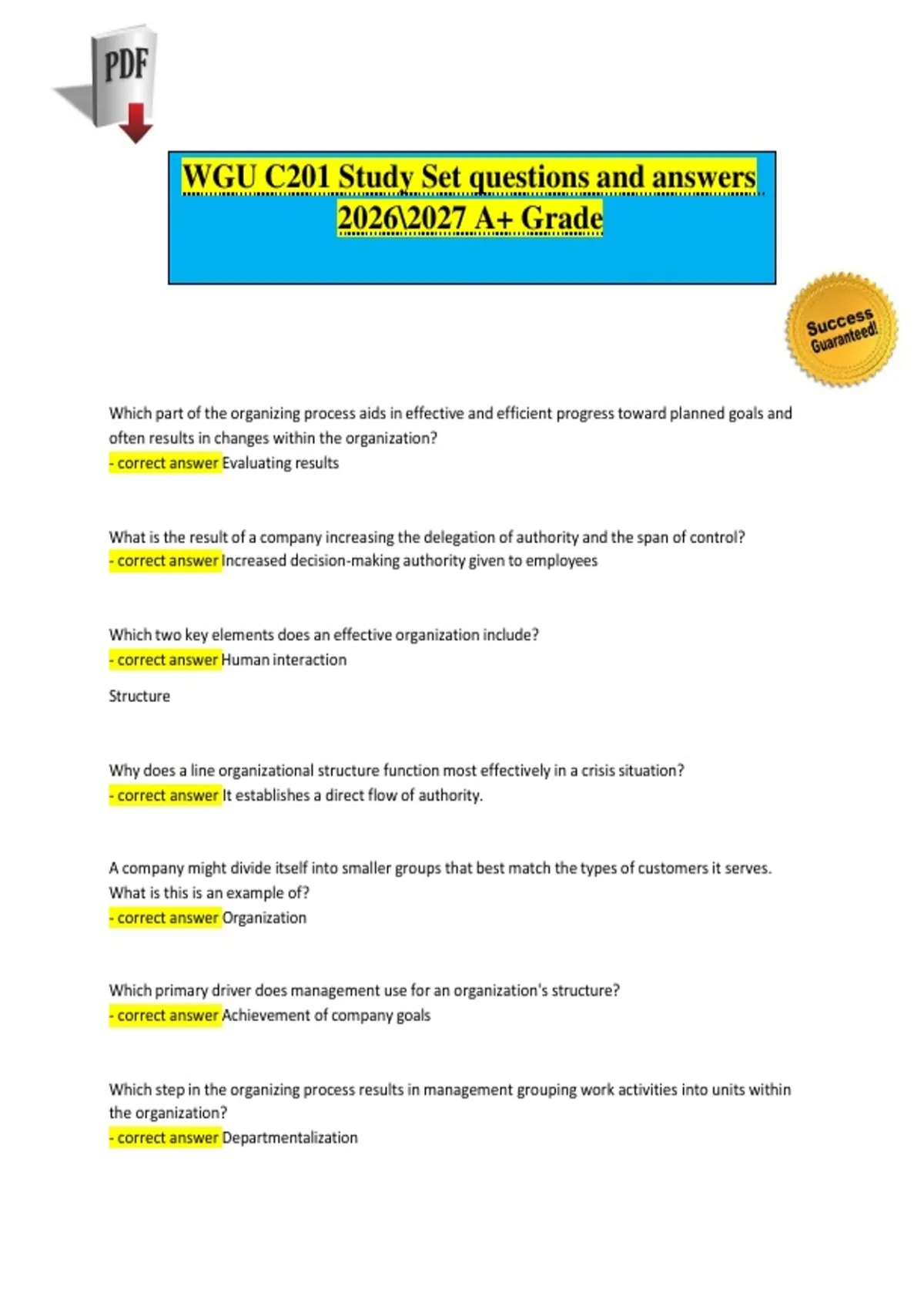 WGU C201 Study Set questions and answers