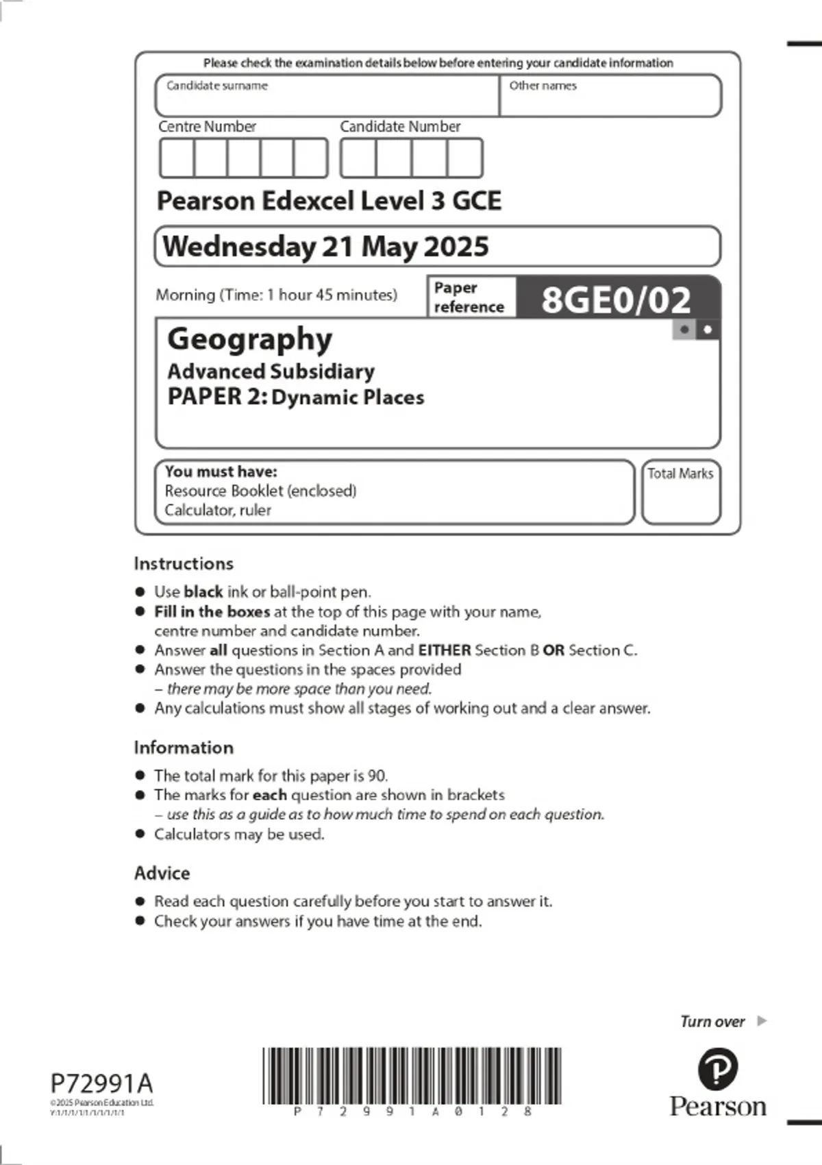 2025 pearson edexcel level 3 gce geography advance