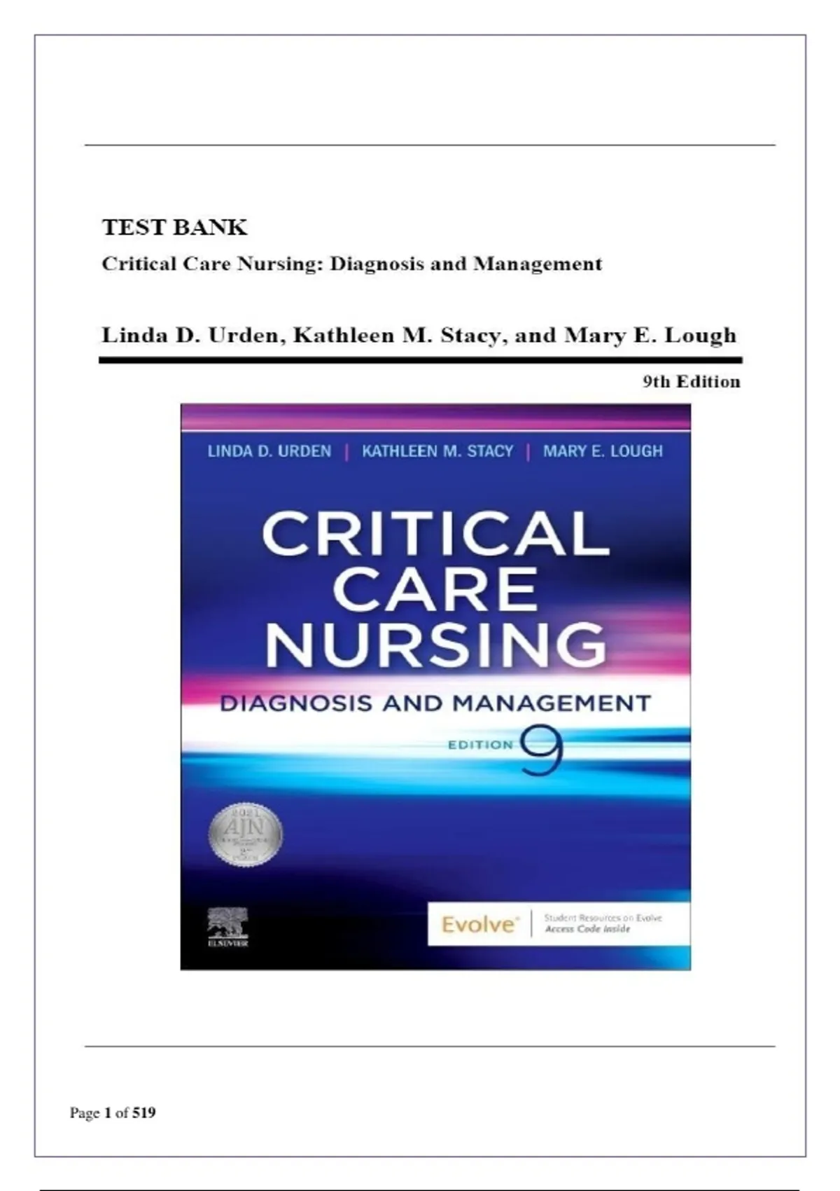 Boost your exam confidence with the official Test Bank for Critical Care Nursing: Diagnosis and Management, 9th Edition by Urden, Stacy & Lough. This verified and complete test bank includes every chapter with accurate answers, rationales, and NCLEX references. Fully updated for 2026, it’s the perfect study tool for nursing students preparing for critical care exams. All questions are organized by chapter and formatted for easy review. Trust this resource to help you master key concepts, improve test-taking skills, and achieve higher grades. Instant download available after purchase. Critical care nursing Urden test bank 9th edition NCLEX questions Test bank 2026 Verified answers Nursing exam prep ICU nursing Stacy Lough Study guide