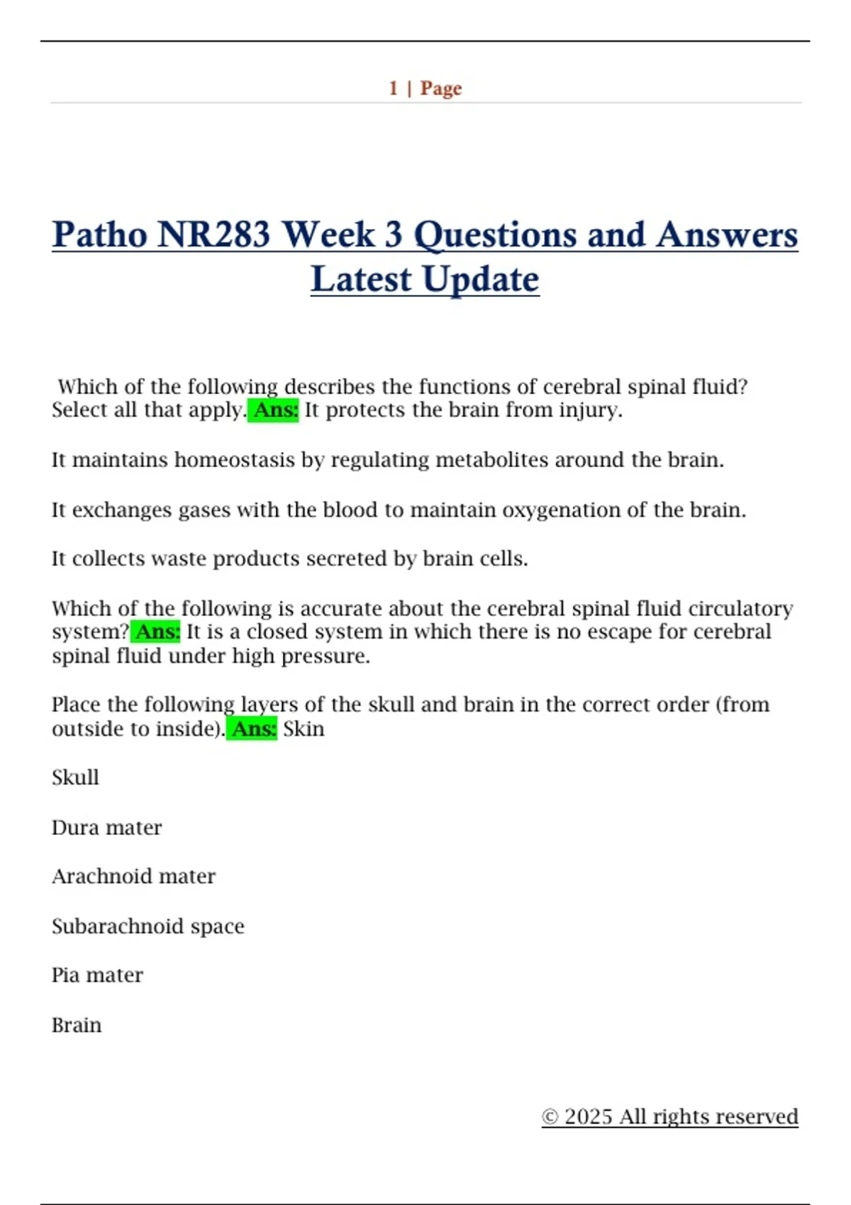 Select all that apply. Ans: It protects the brain from injury.