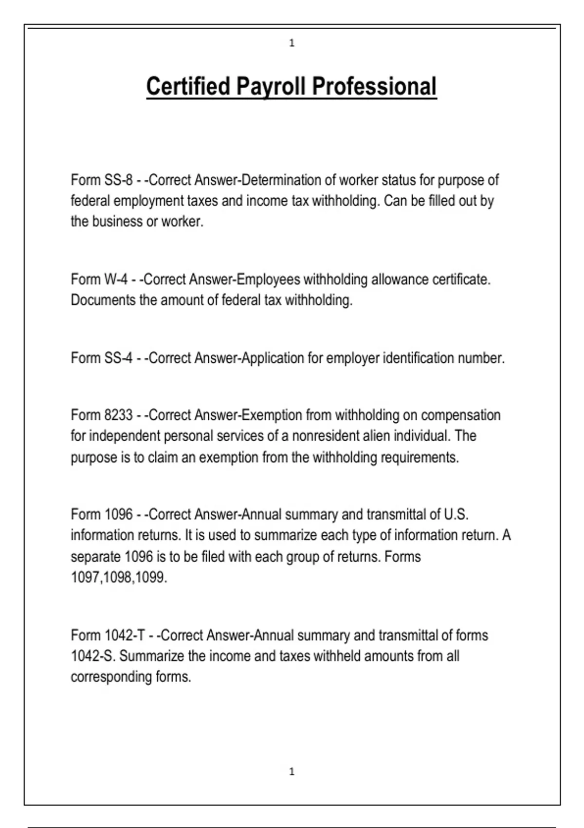 Form 1042 - -Correct Answer-Annual withholding tax return for U.S. source