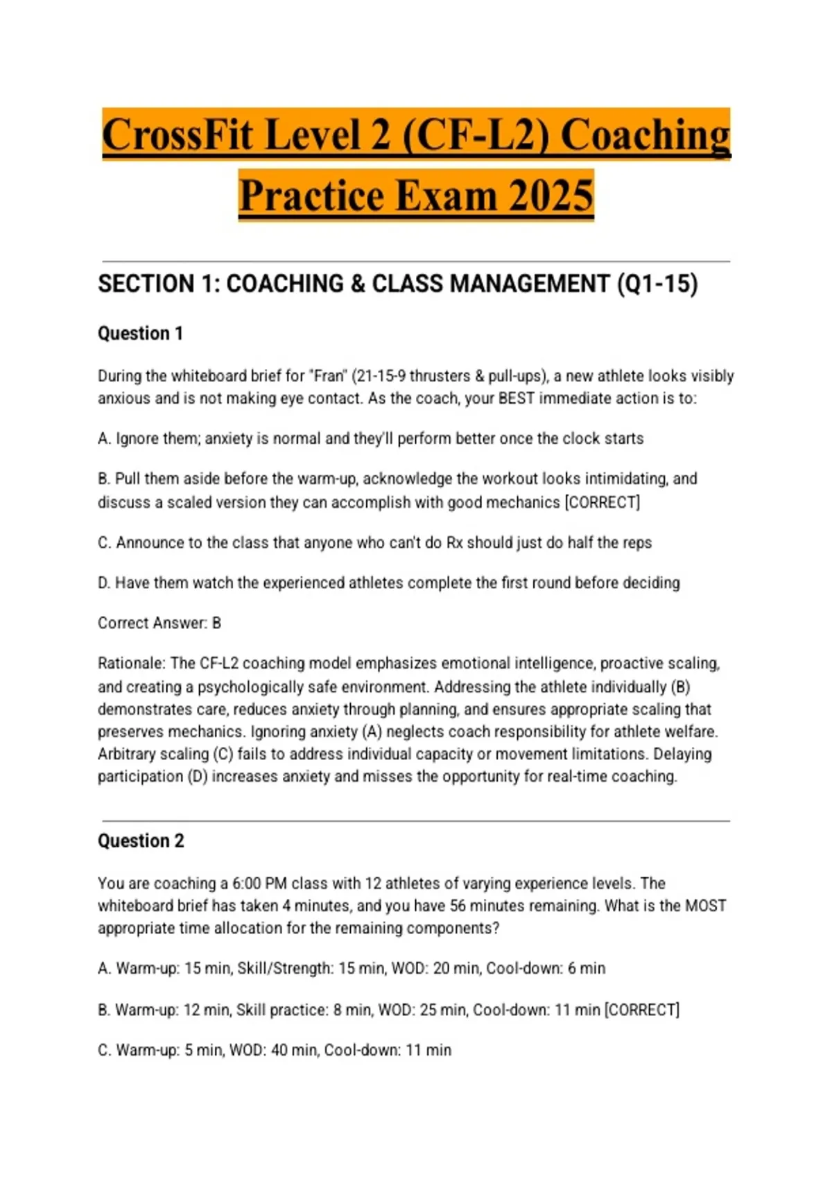 SECTION 1: COACHING & CLASS MANAGEMENT (Q1-15)