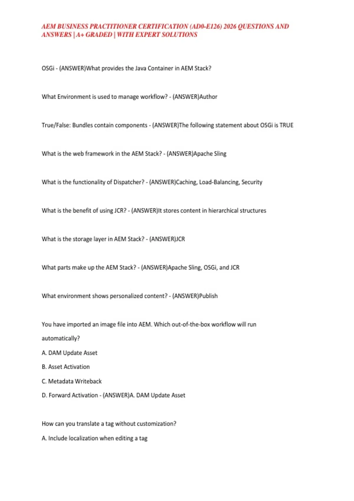 AEM BUSINESS PRACTITIONER CERTIFICATION (AD0-E126) 2026 QUESTIONS AND