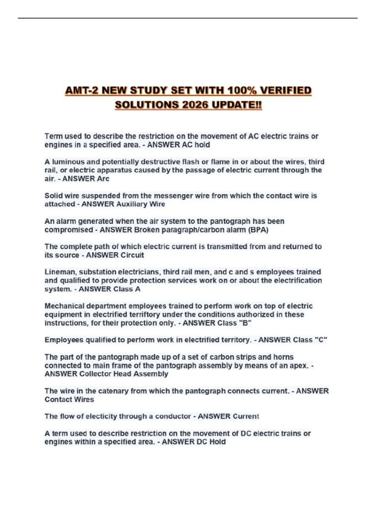 AMT-2 NEW STUDY SET WITH 100% VERIFIED SOLUTIONS 2026 UPDATE!!...