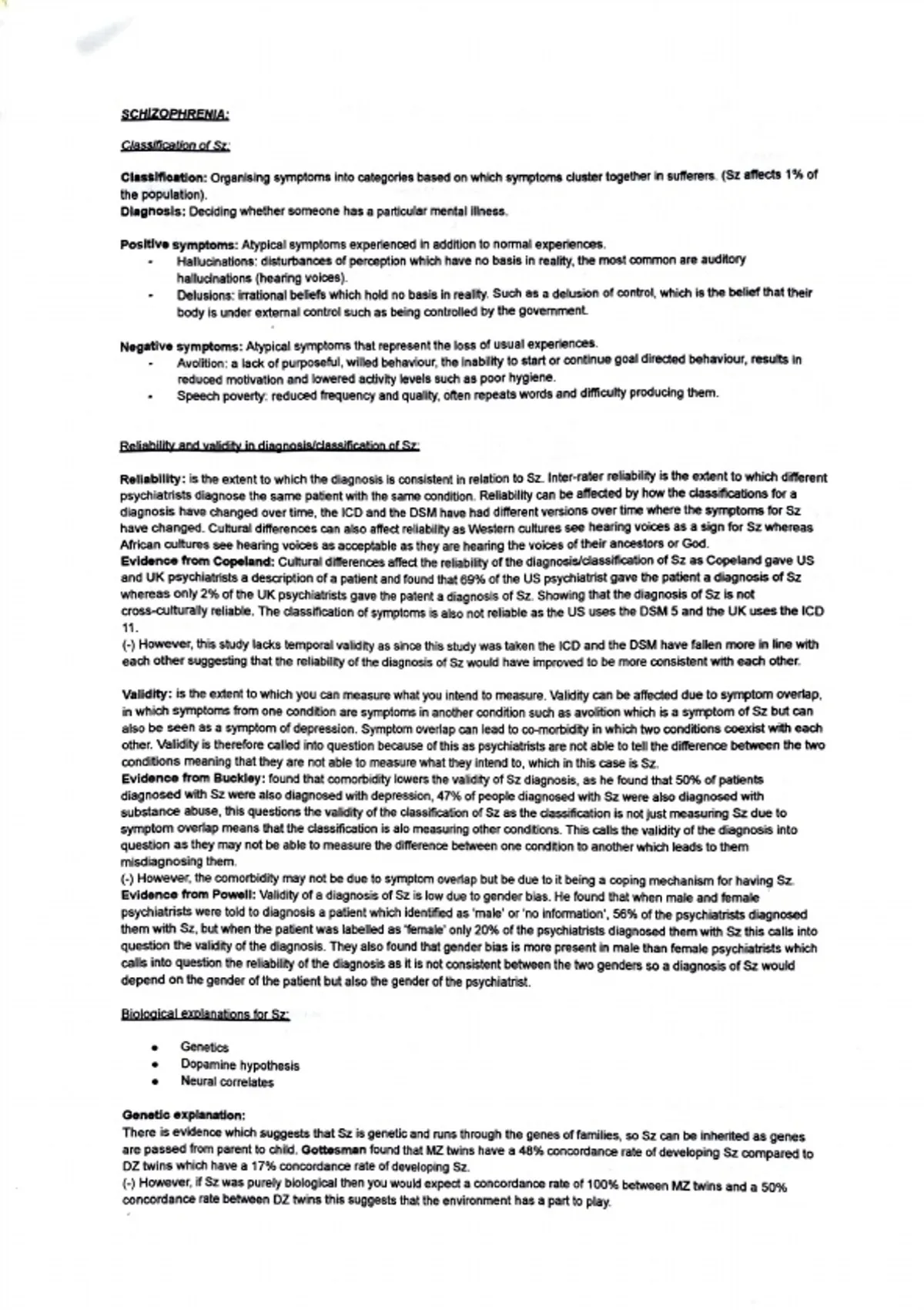 (·) However, if Sz was purely biological then you would expect a concordance rate of 100% between MZ twins and a 50%