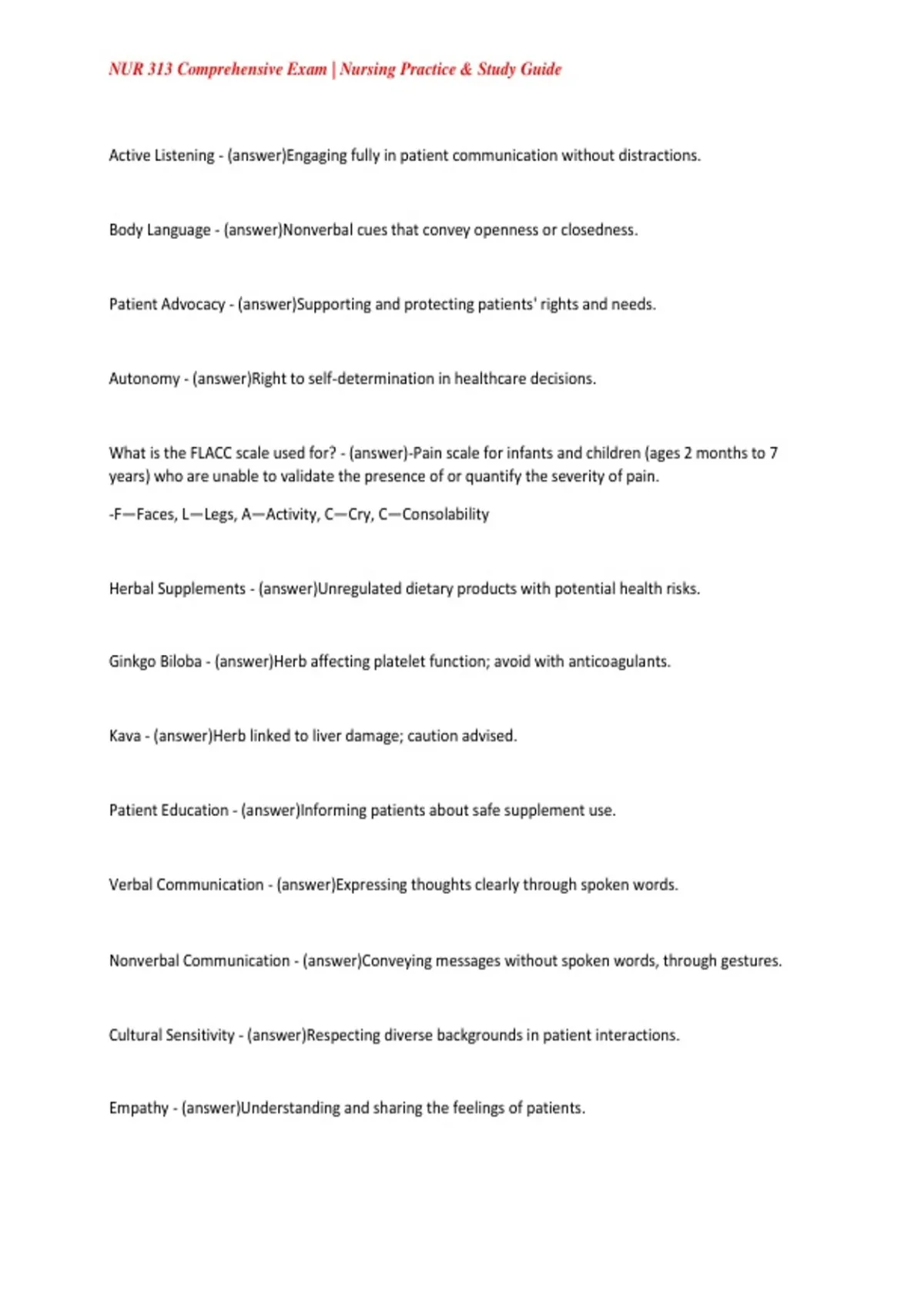 NUR 313 Comprehensive Exam | Nursing Practice & Study Guide