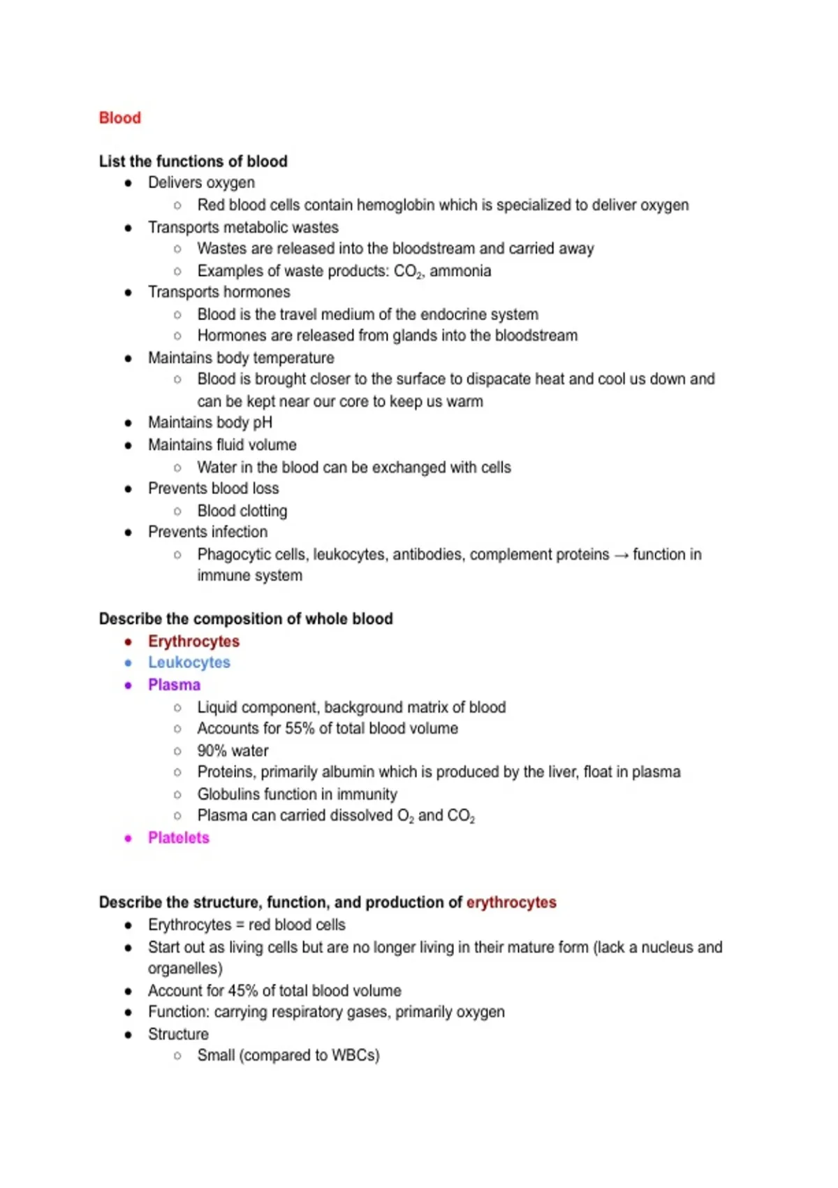 ● Erythrocytes = red blood cells