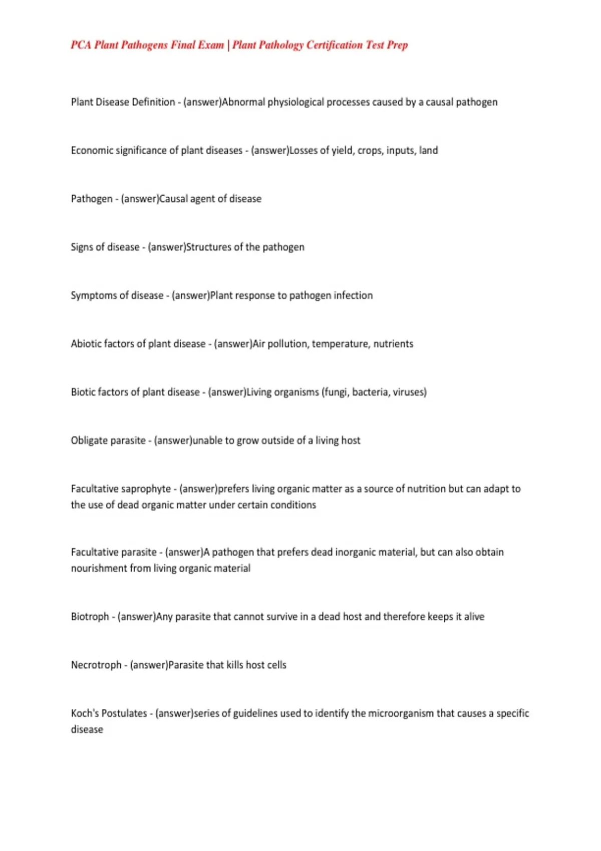 ,PCA Plant Pathogens Final Exam | Plant Pathology Certification Test Prep