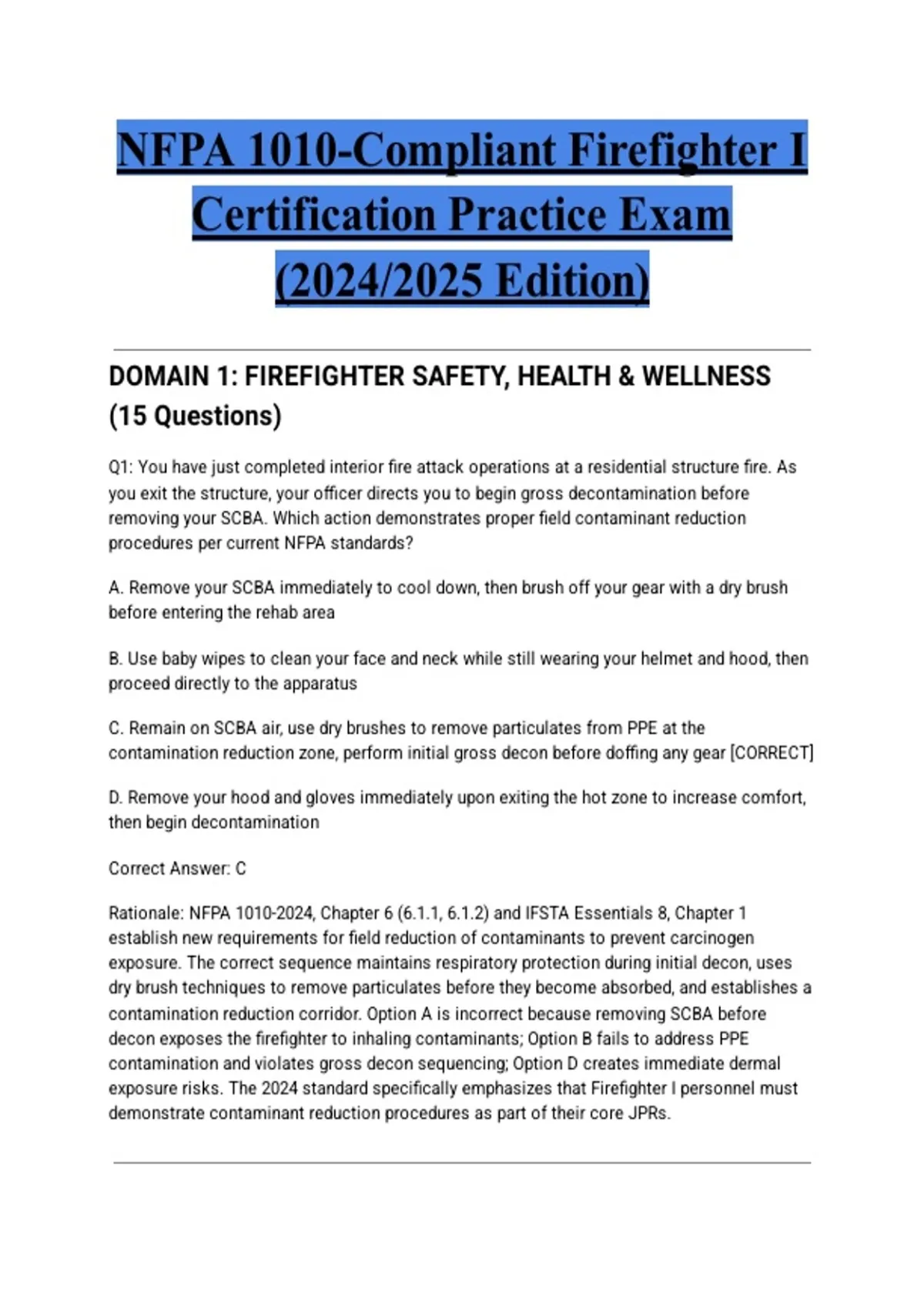 DOMAIN 1: FIREFIGHTER SAFETY, HEALTH & WELLNESS