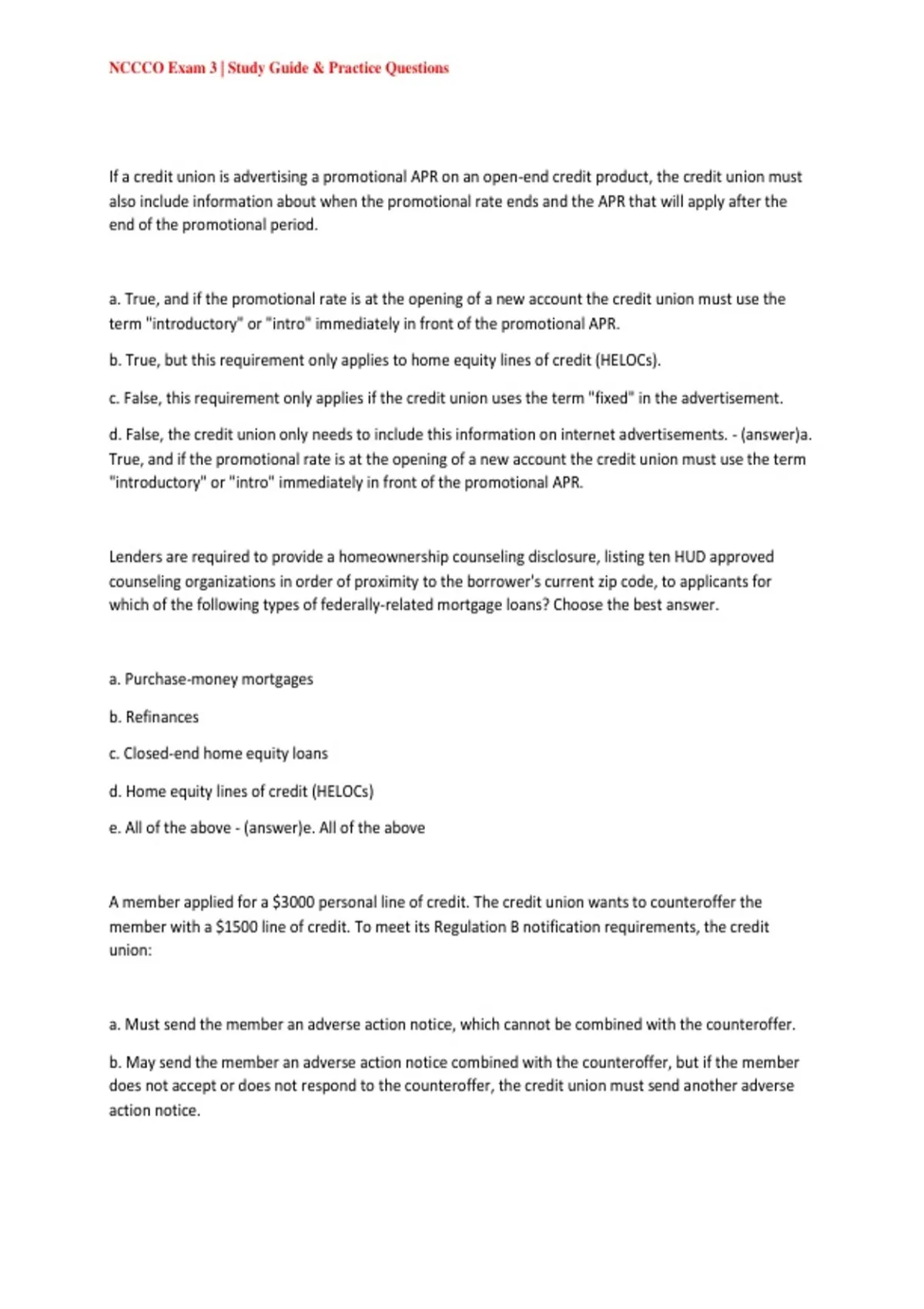 d. Must send the member an adverse action notice with all counteroffers. - (answer)c. May send the