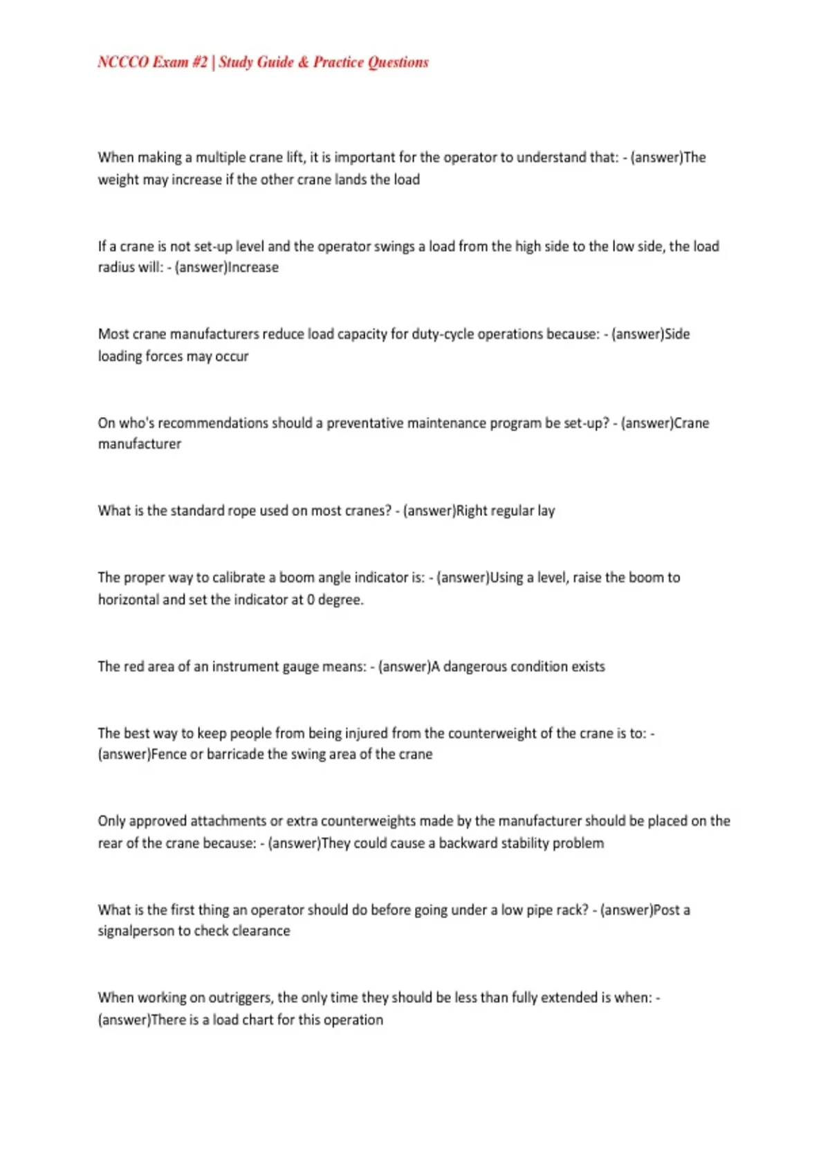 , NCCCO Exam #2 | Study Guide & Practice Questions