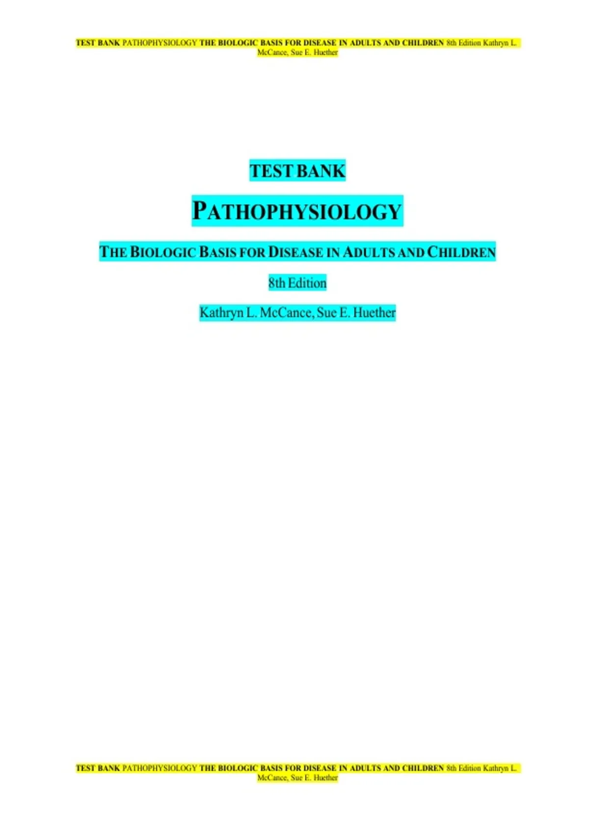 TESTnBANKnPATHOPHYSIOLOGYnTHEnBIOLOGICnBASISnFORnDISEASEnINnADULTSnANDnCHILDRENn8thnEditionnKathrynnL.n
