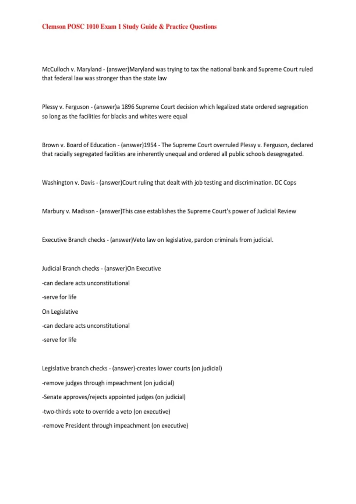 , Clemson POSC 1010 Exam 1 Study Guide & Practice Questions
