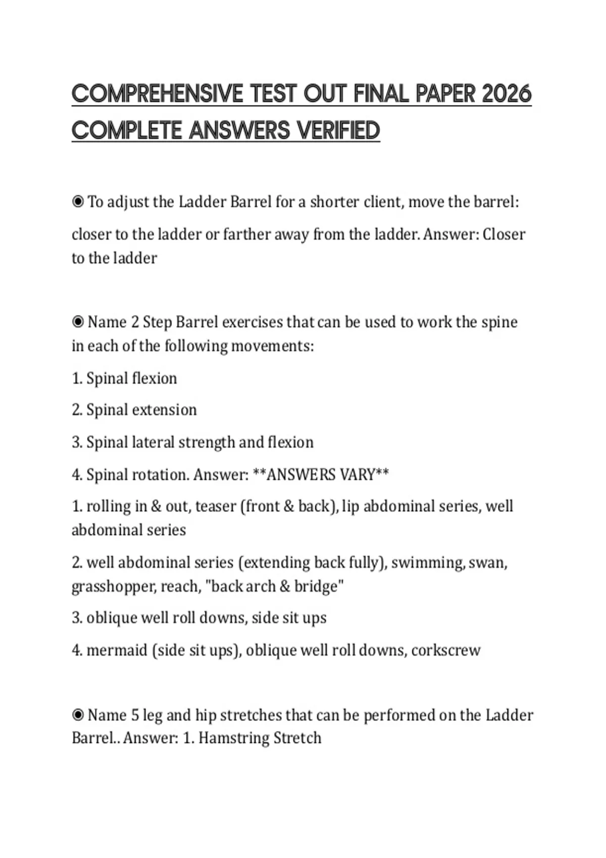 ◉ Name 6 exercises on the Step Barrel and/or the Ladder Barrel