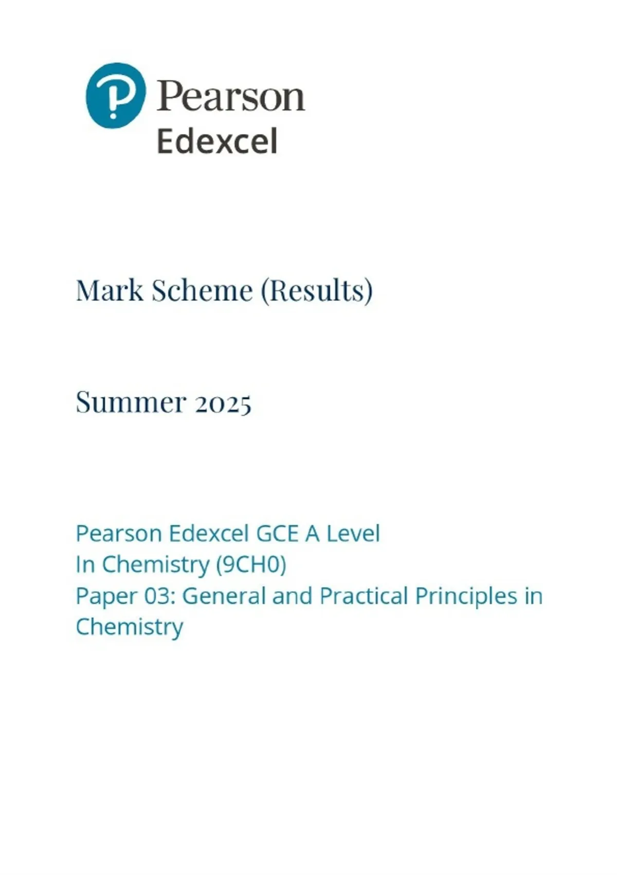 A-LEVEL EDEXCEL 2025 CHEMISTRY PAPER 3 INCLUDING MARK SCHEME