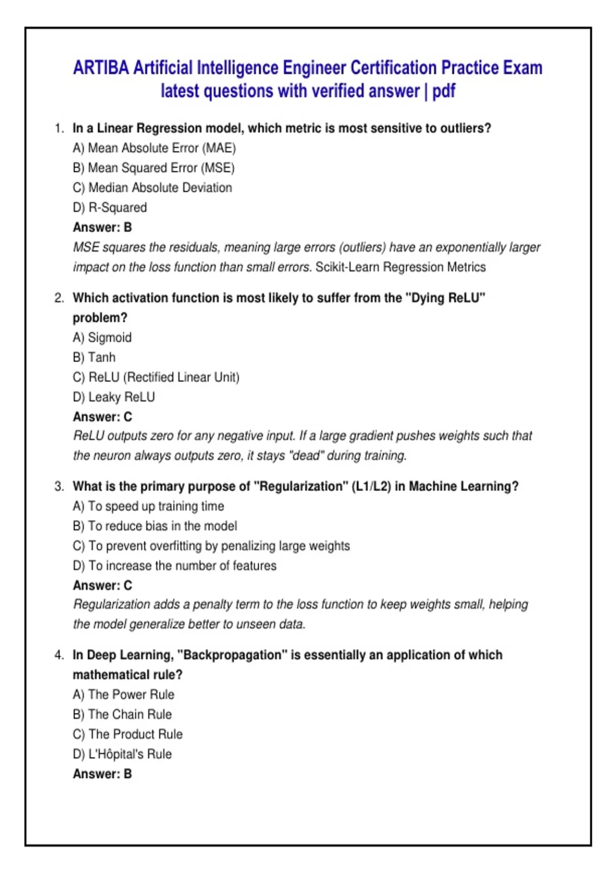 , ARTIBA Artificial Intelligence Engineer Certification Practice Exam