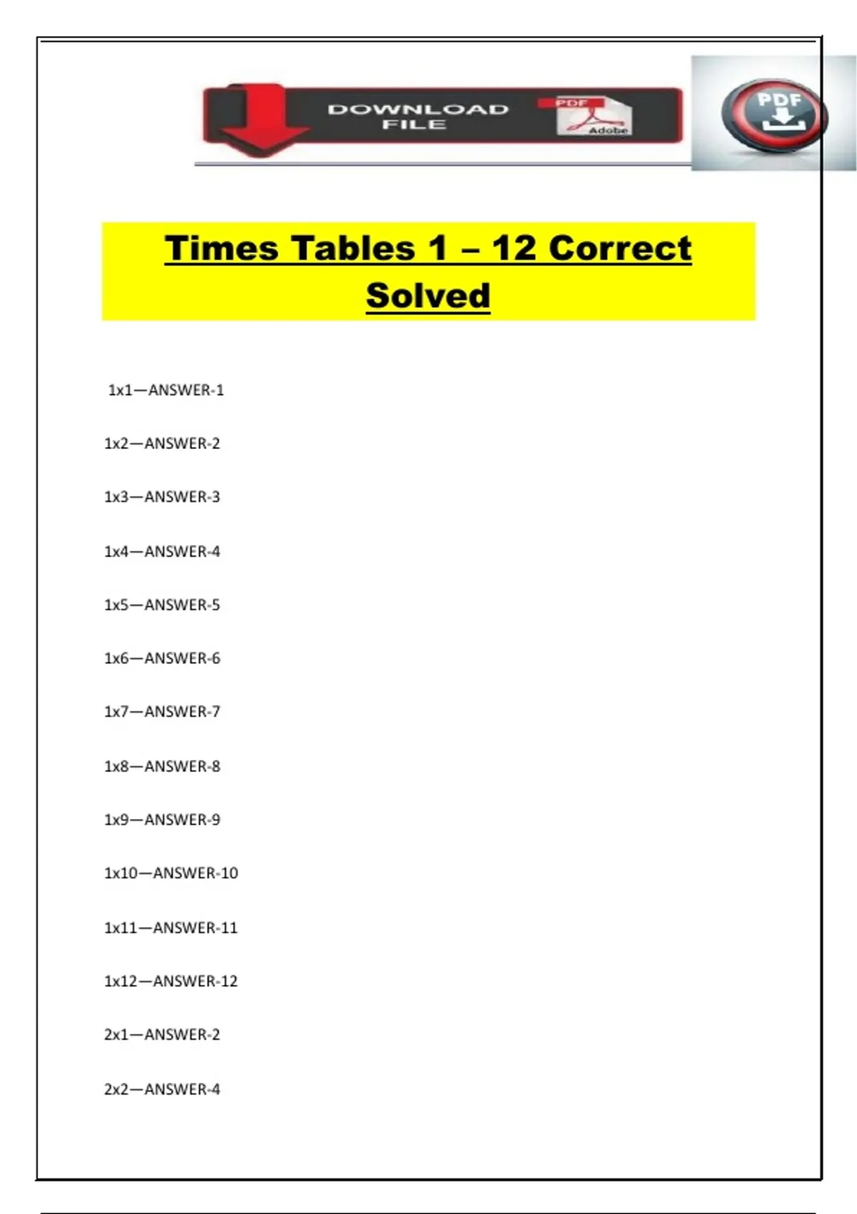 Times Tables 1 – 12 Correct