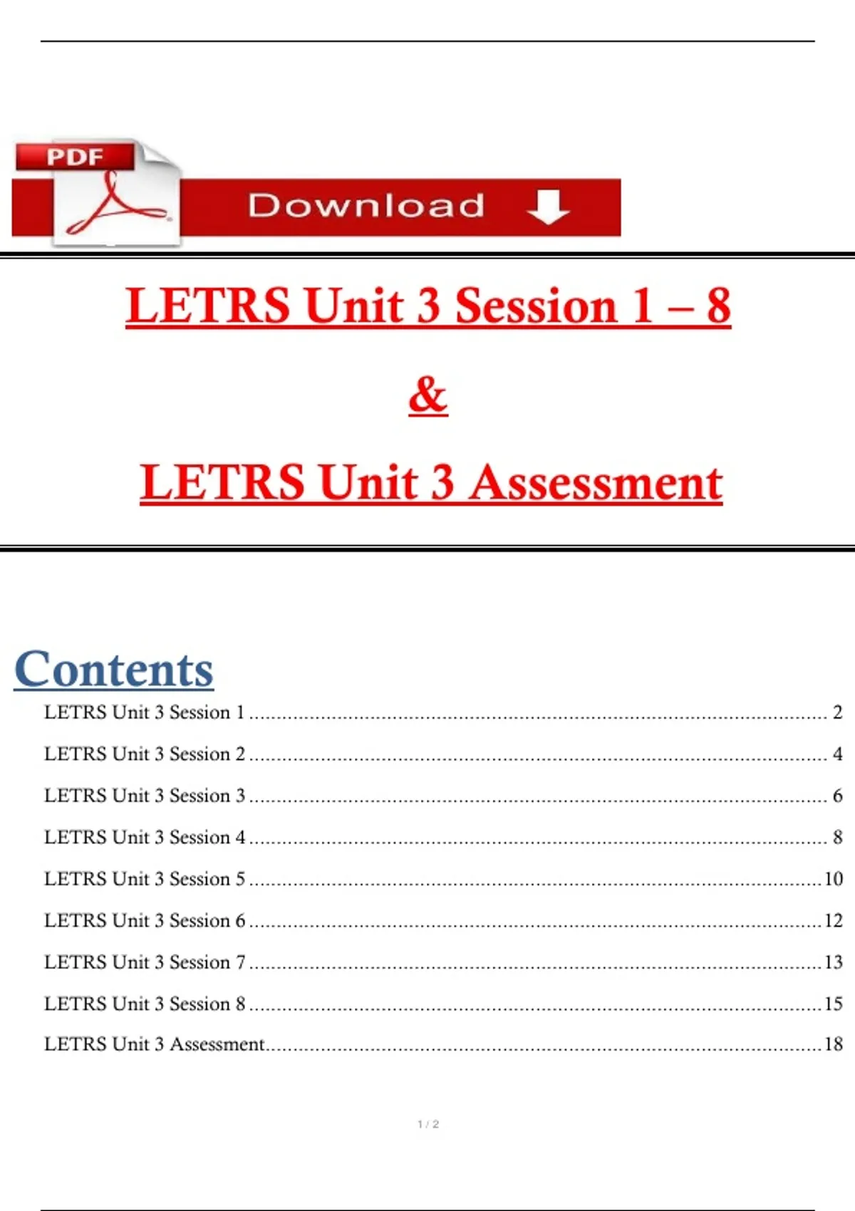 LETRS Unit 3 Assessment..................................................................................................... 18