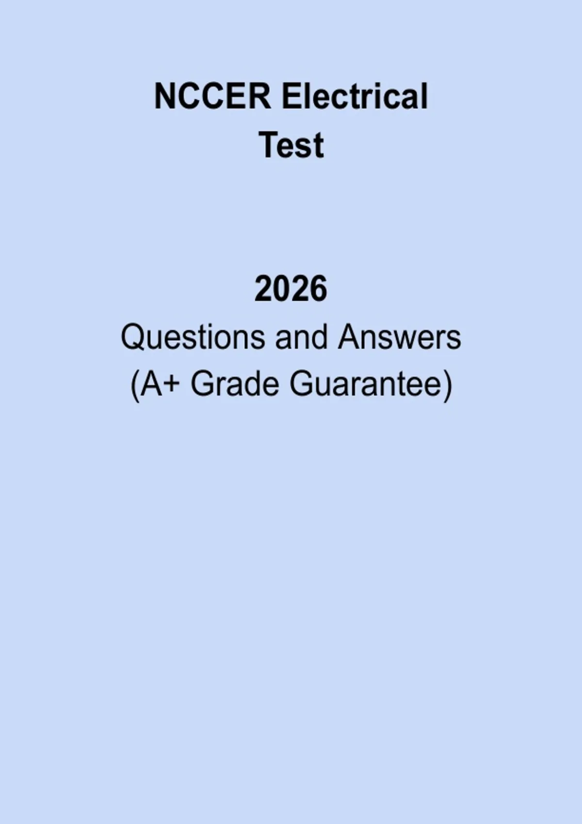 Prepare effectively for the NCCER Electrical Test with this comprehensive study guide designed for electrical trade students and professionals seeking certification. This resource includes exam-style practice questions with verified answers covering essential electrical concepts such as wiring systems, electrical safety, circuits, tools, blueprint reading, and installation procedures, making it an essential tool for reinforcing technical knowledge, improving exam readiness, and confidently passing the NCCER Electrical certification exam