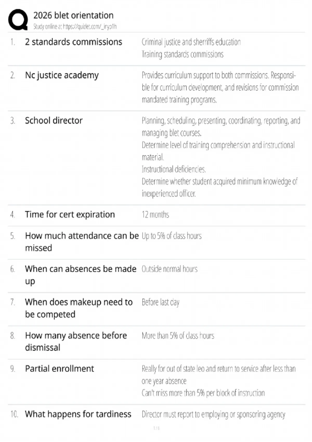 2026 BLET Orientation Study Guide / Basic Law Enforcement Training Prep / North Carolina Exam / Score 100%