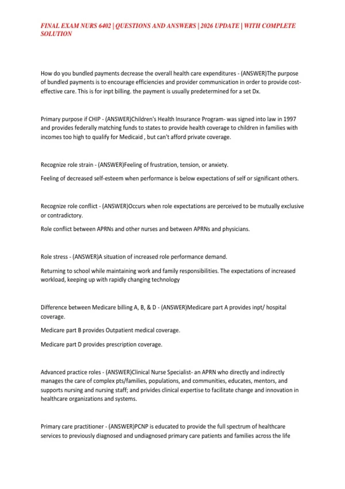 FINAL EXAM NURS 6402 | QUESTIONS AND ANSWERS | 2026 UPDATE | WITH COMPLETE