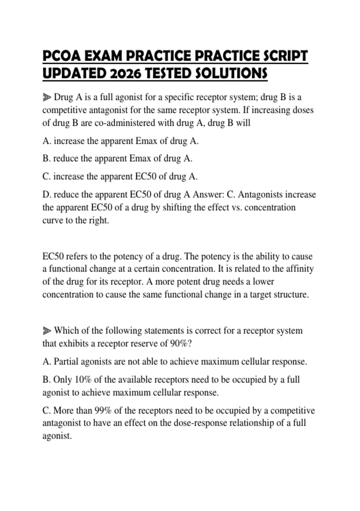 PCOA EXAM PRACTICE PRACTICE SCRIPT UPDATED 2026 TESTED SOLUTIONS