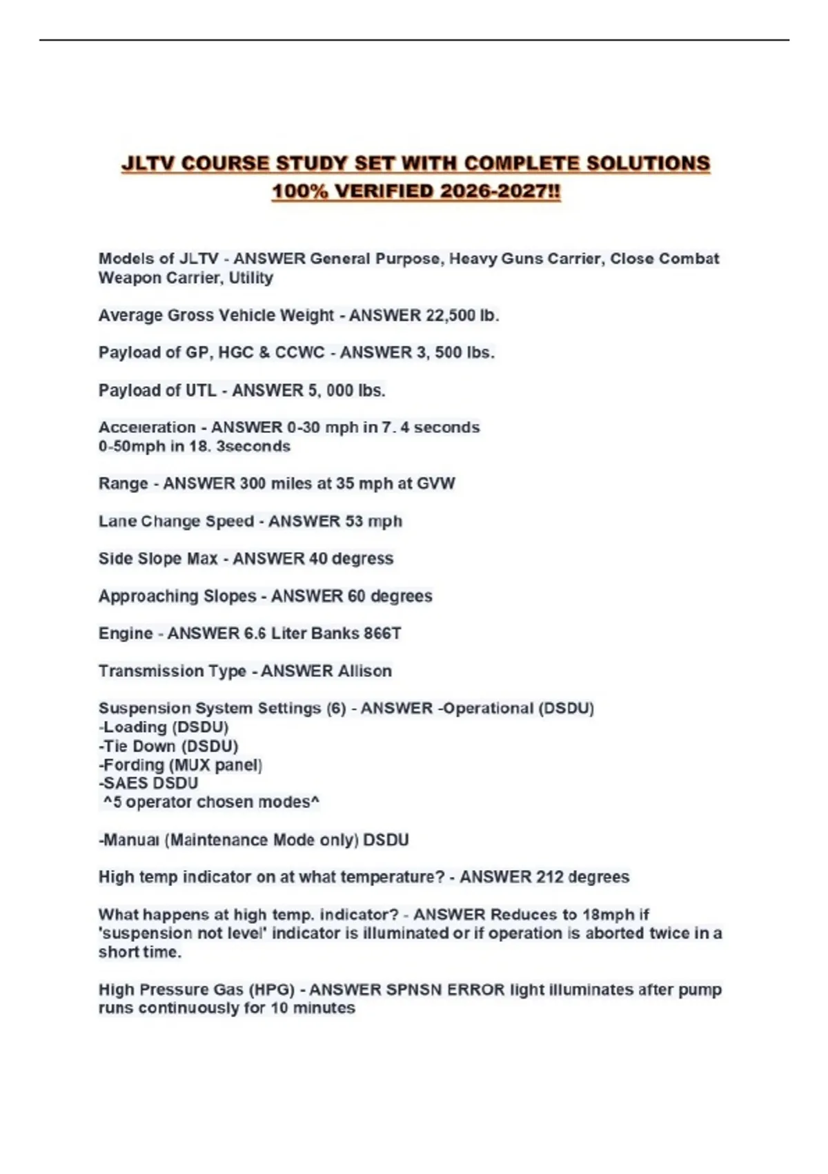 JLTV COURSE STUDY SET WITH COMPLETE SOLUTIONS 100% VERIFIED !!...