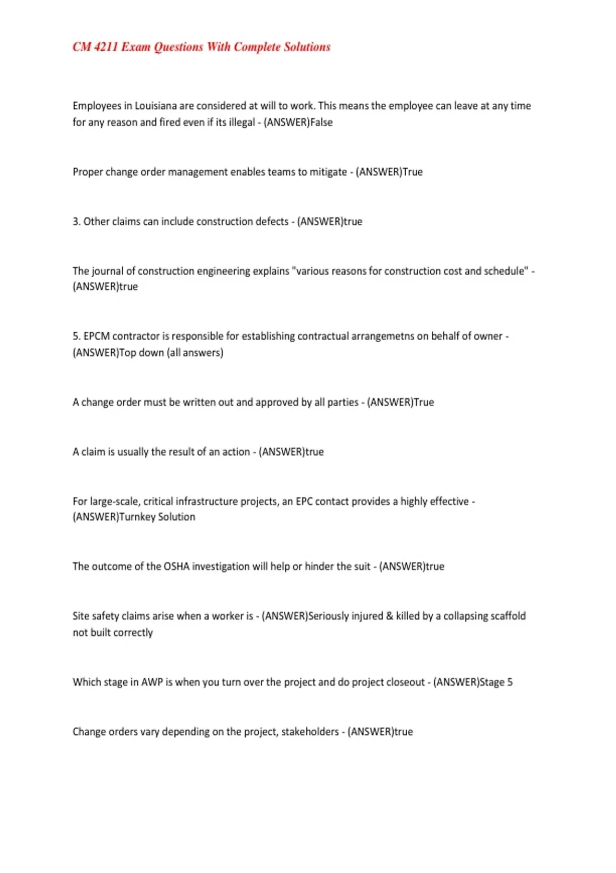, CM 4211 Exam Questions With Complete Solutions