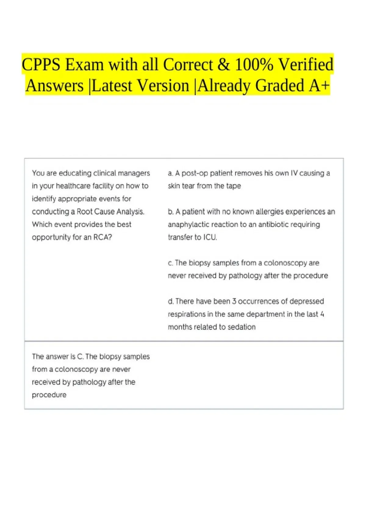 CPPS Exam with all Correct & 100% Verified Answers |Latest Version |Already Graded A+