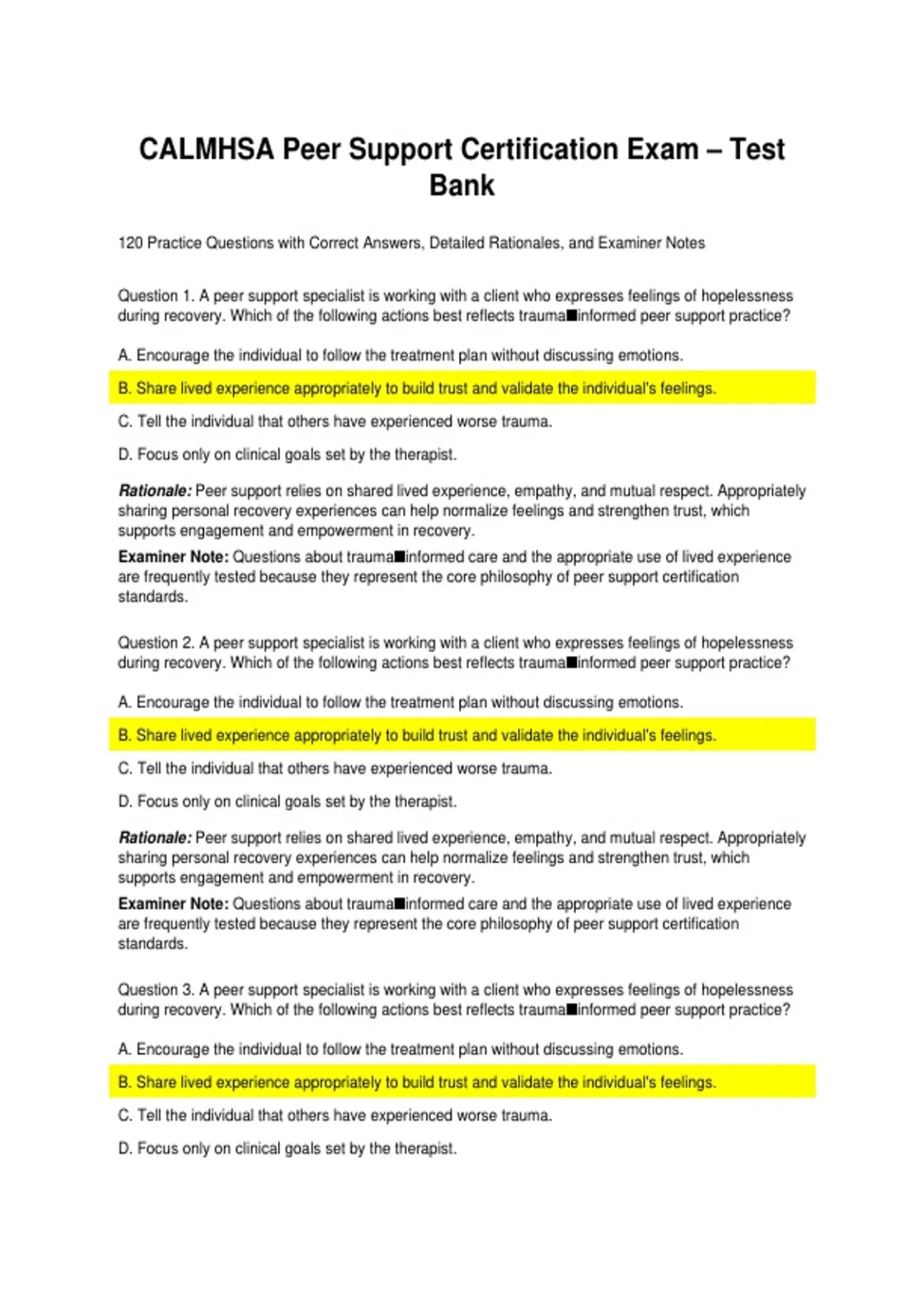 120 Practice Questions with Correct Answers, Detailed Rationales, and Examiner Notes
