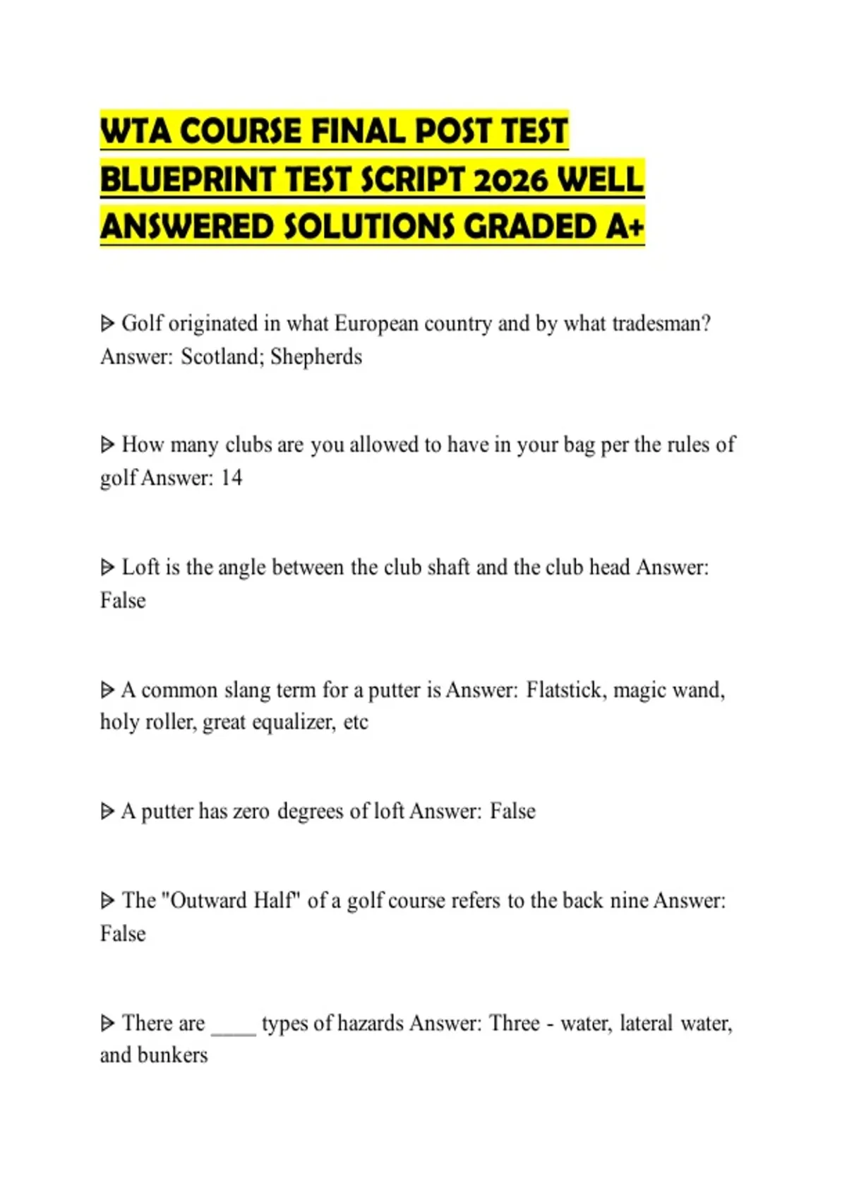 WTA COURSE FINAL POST TEST