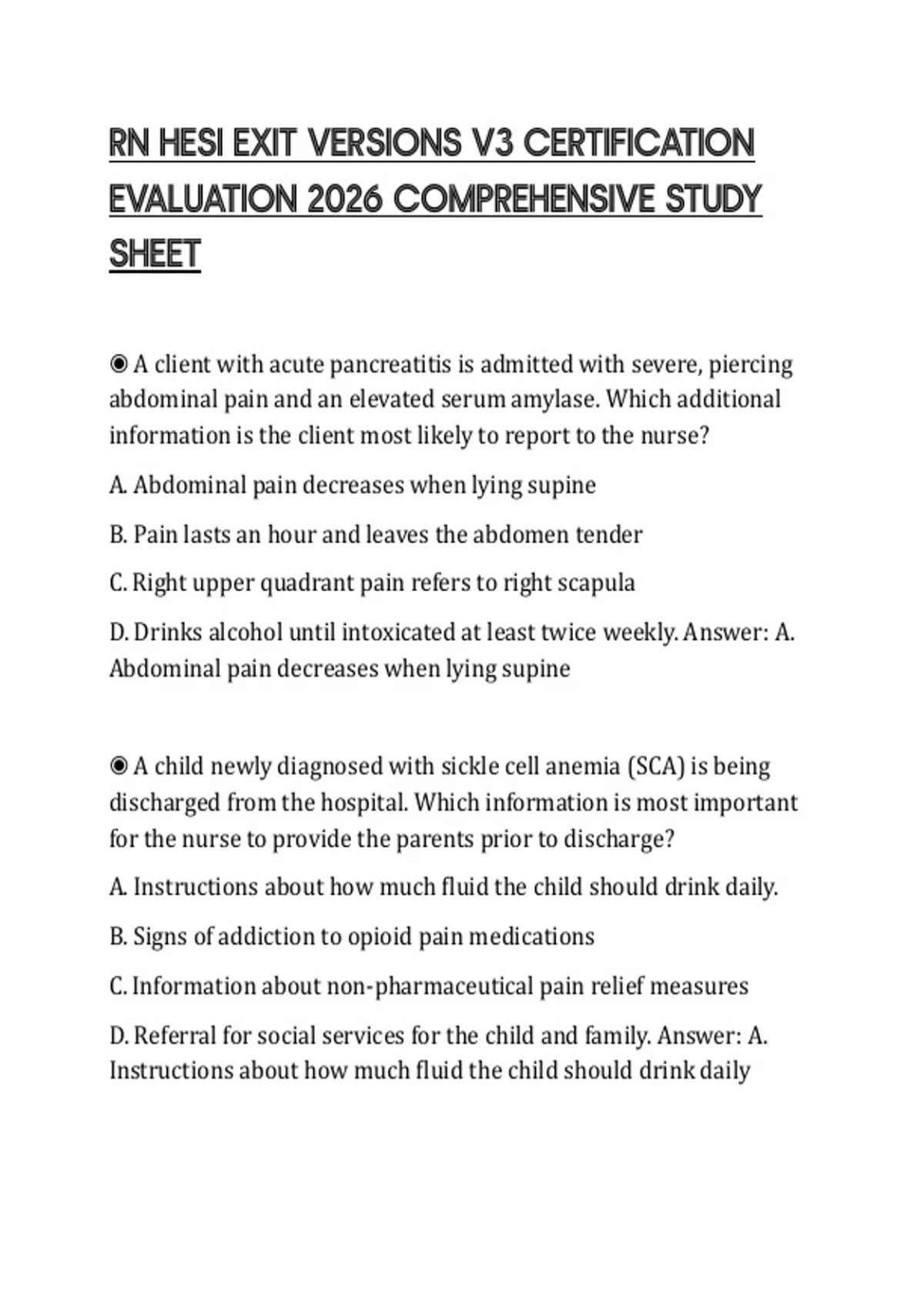 ◉ A client with acute pancreatitis is admitted with severe, piercing