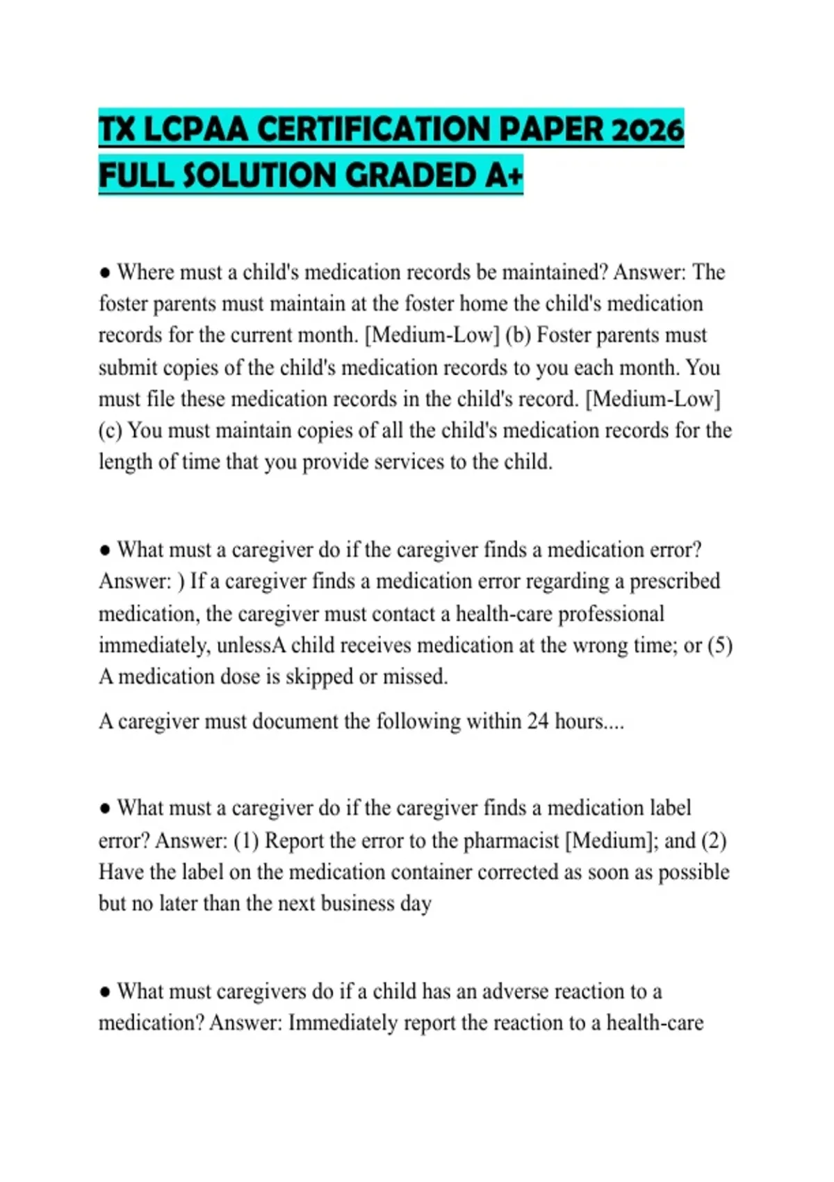 Answer: ) If a caregiver finds a medication error regarding a prescribed