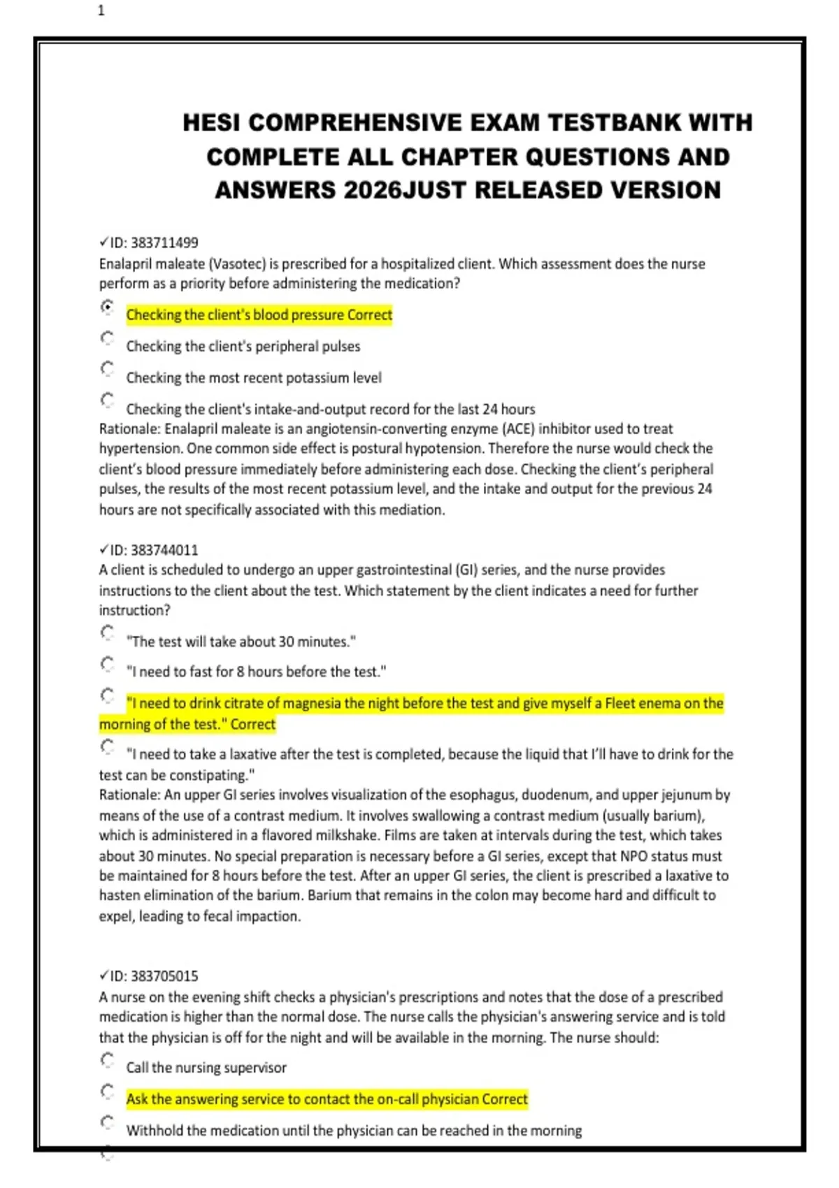HESI COMPREHENSIVE EXAM TESTBANK WITH