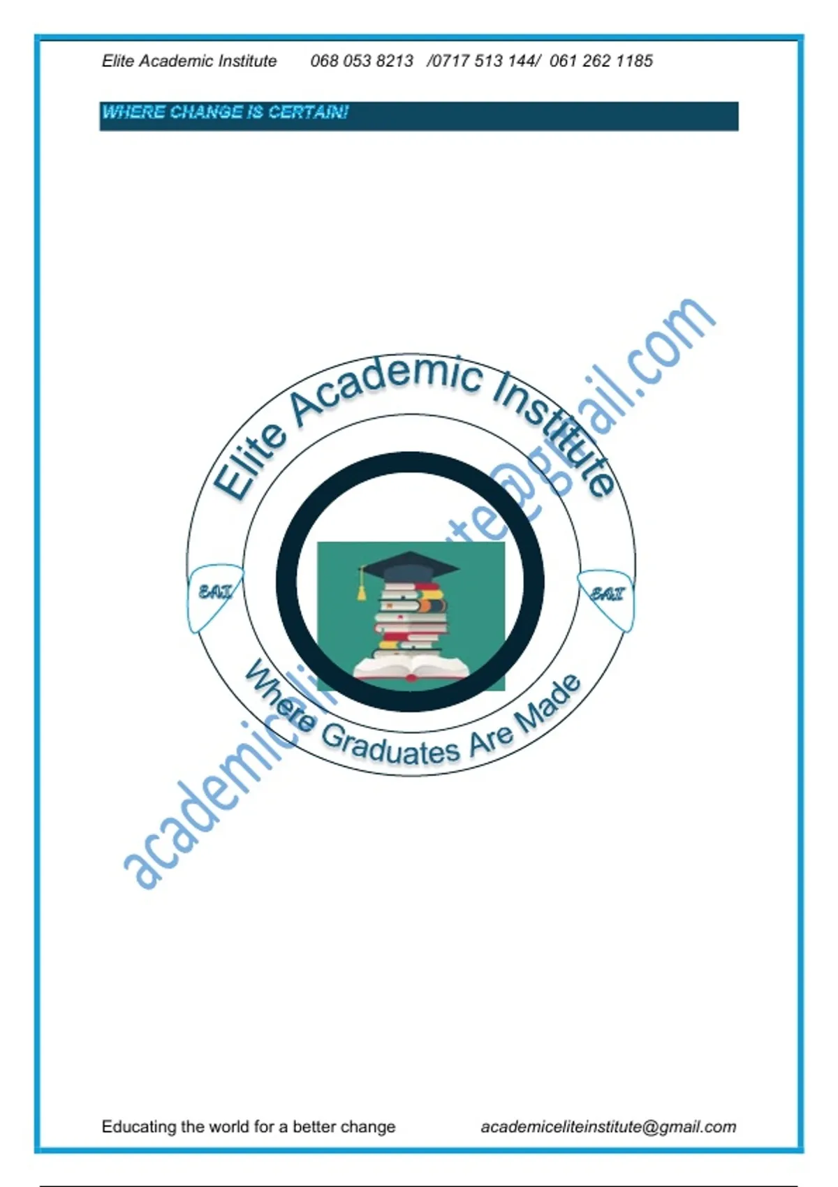 Elite Academic Institute 068 053 8213 /0717 513 144/ 061 262 1185