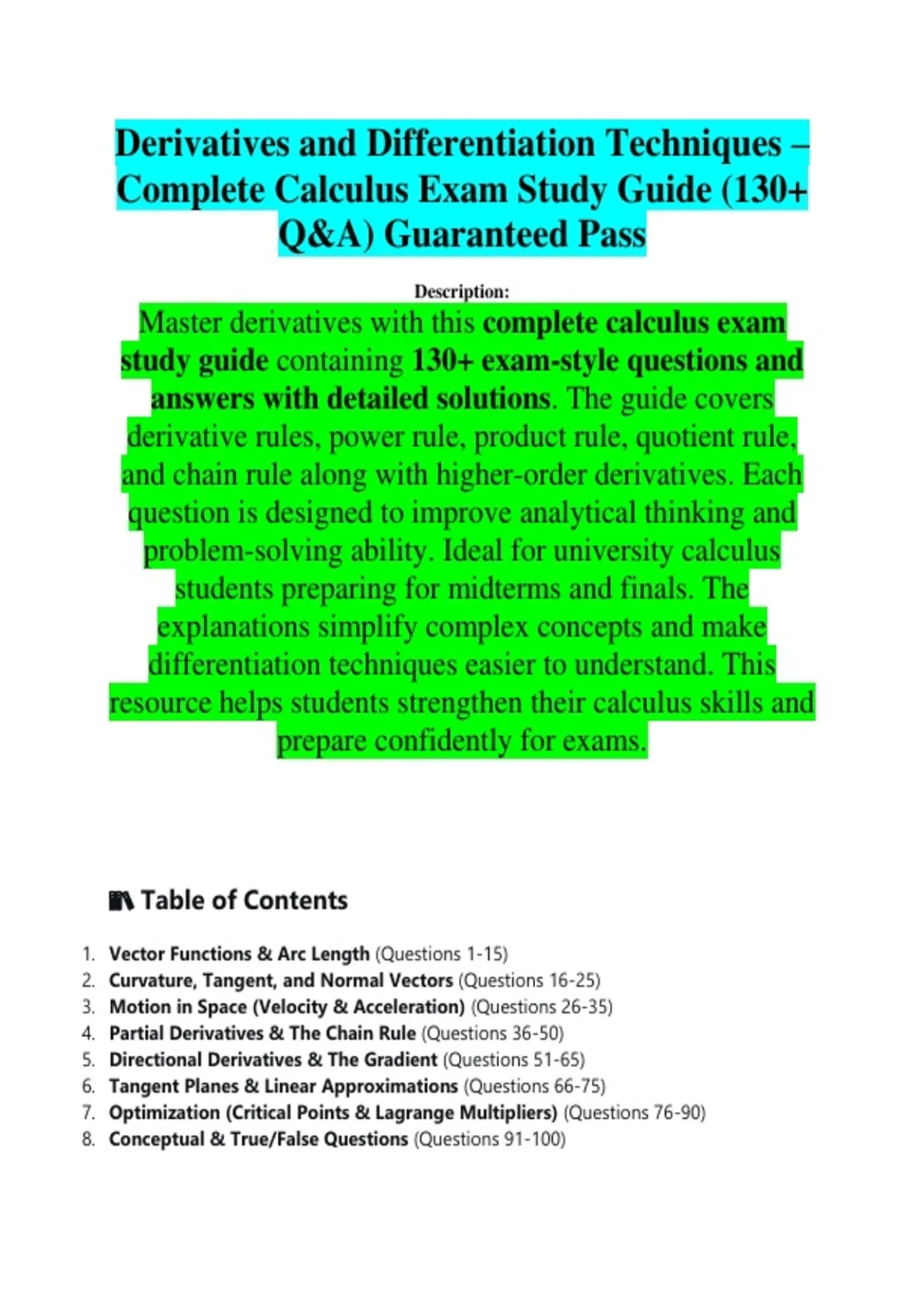 Master derivatives with this complete calculus exam
