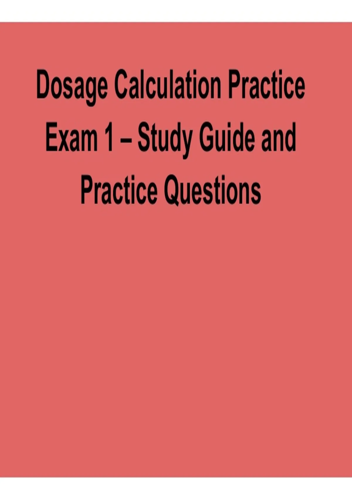 Dosage Calculation Practice Exam 1 – Study Guide and Practice Questions.pdf 1 Dosage Calculation Practice Exam 1 – Study Guide and Practice Questions.pdf
