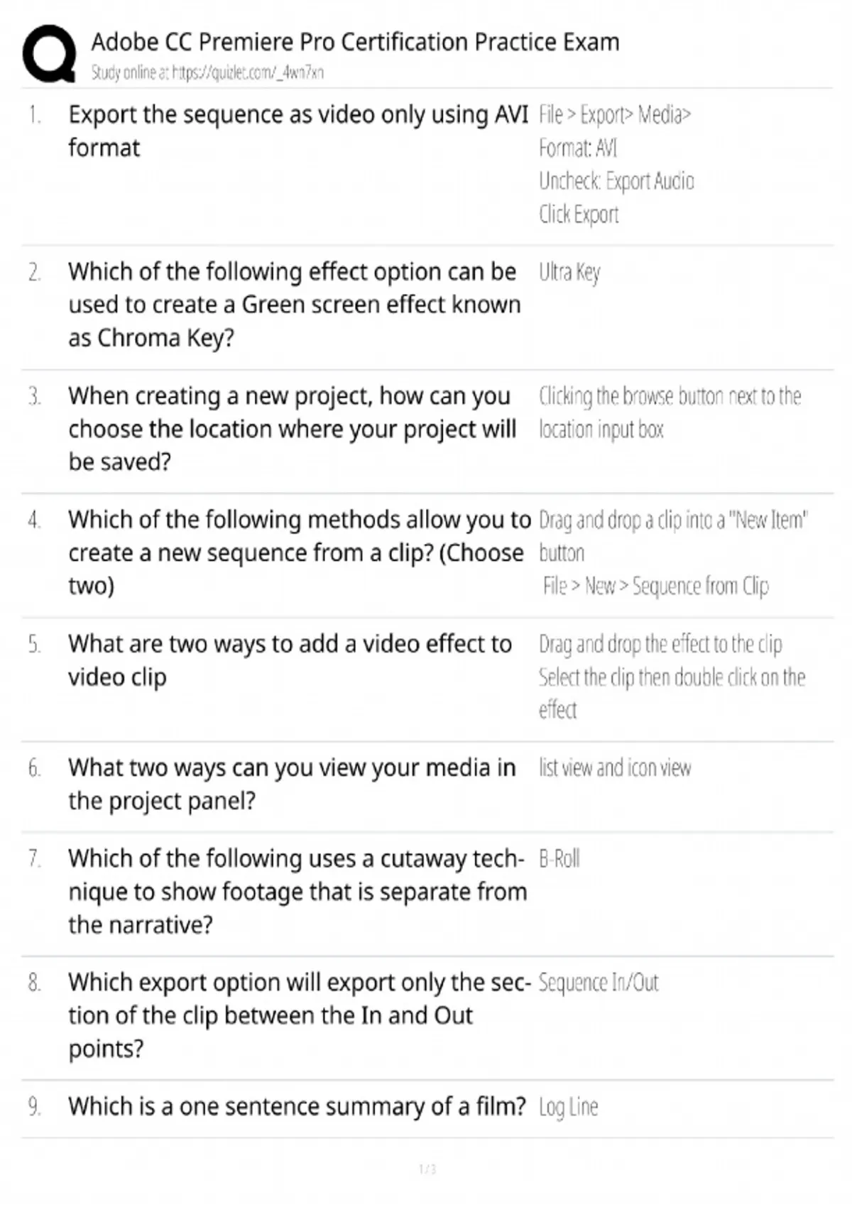 Adobe Premiere Pro Certification / VID 230 Study Guide / 2025 Update / Score 100%