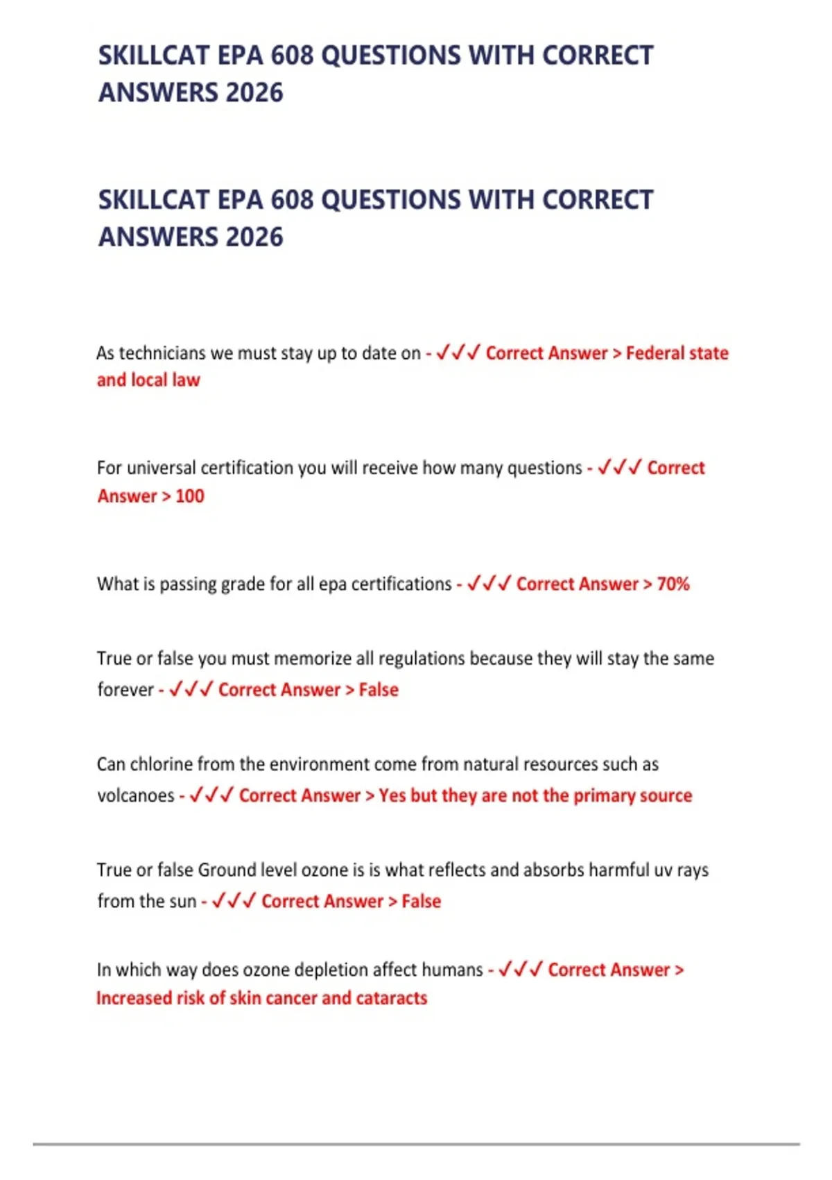 , SKILLCAT EPA 608 QUESTIONS WITH CORRECT