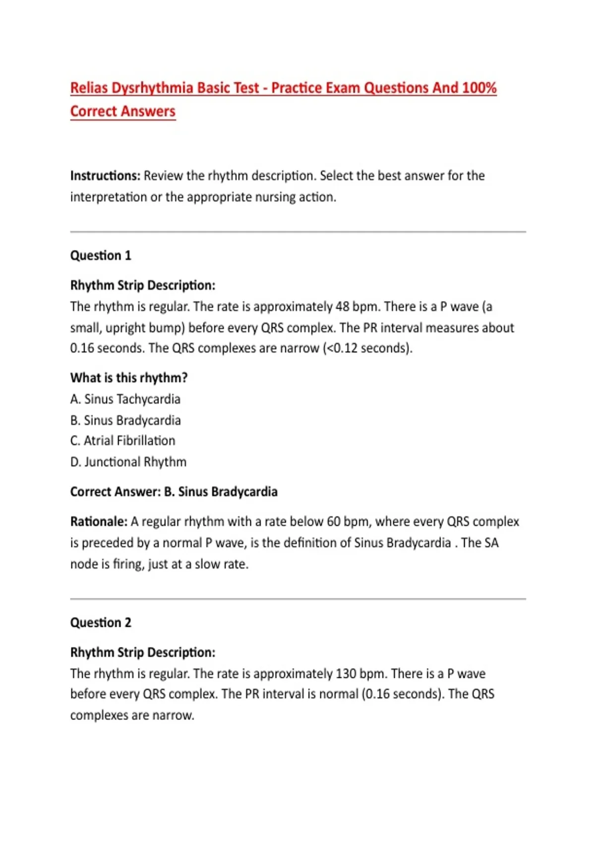 Instructions: Review the rhythm description. Select the best answer for the