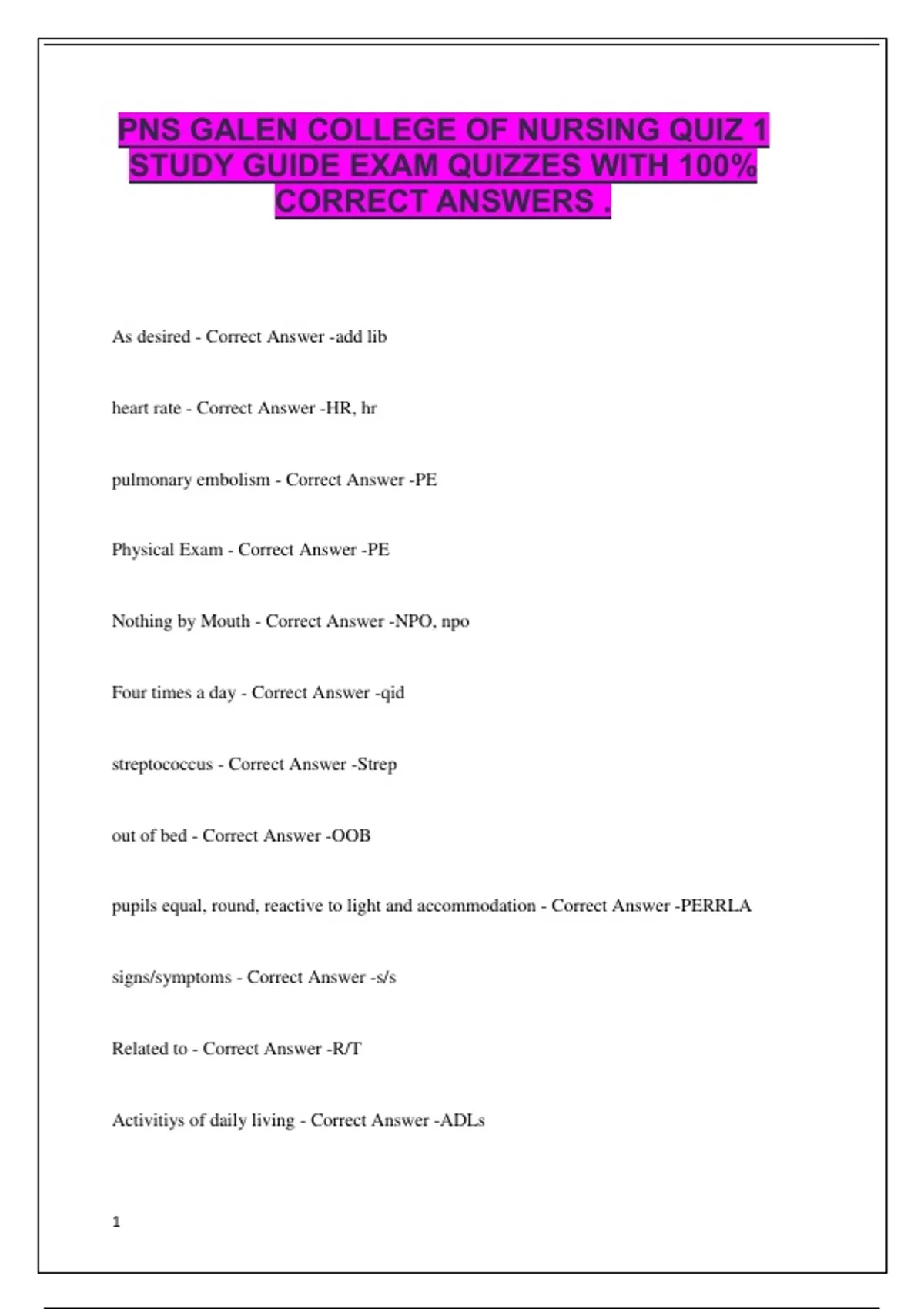 STUDY GUIDE EXAM QUIZZES WITH 100%