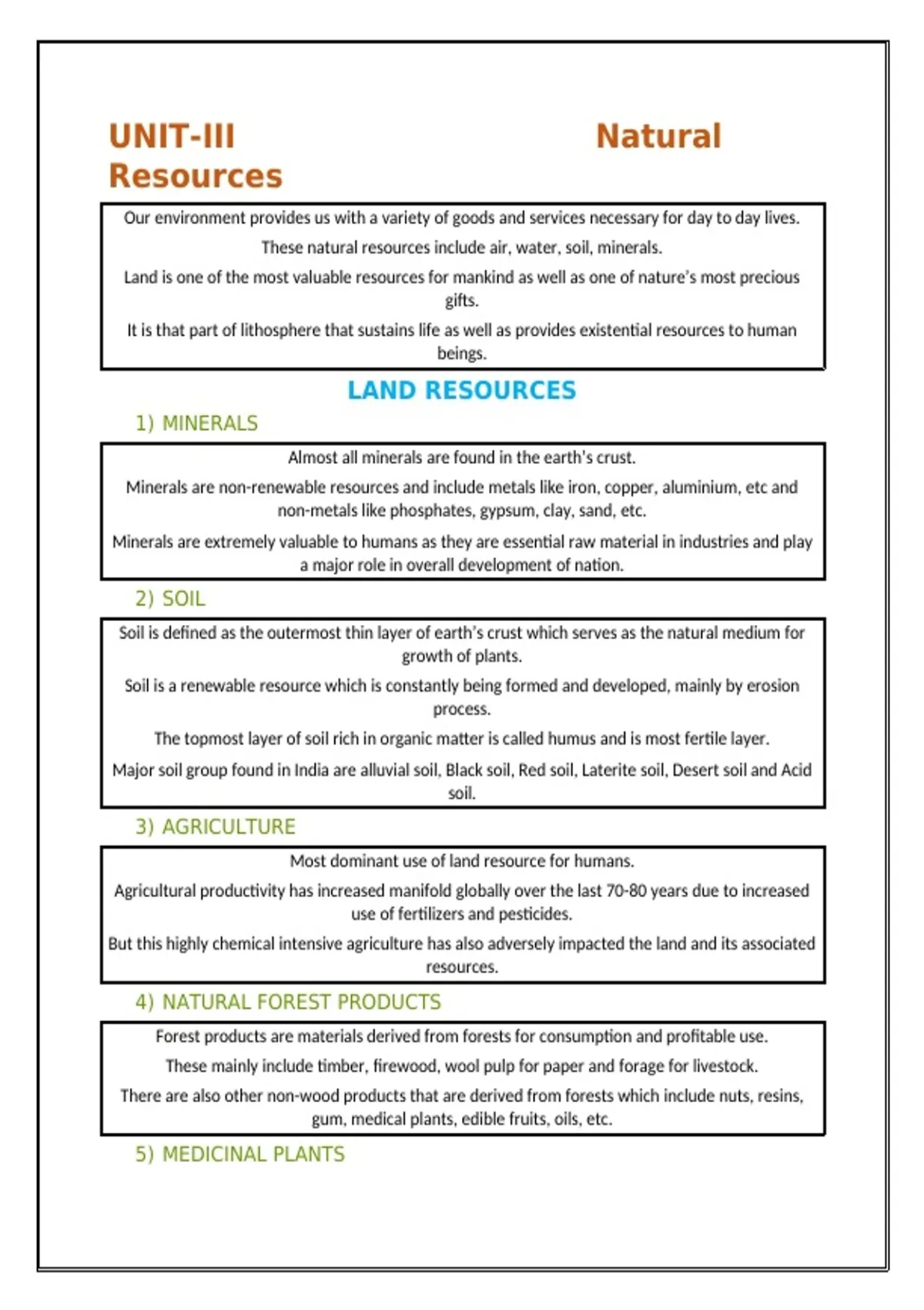 Minerals are non-renewable resources and include metals like iron, copper, aluminium, etc and