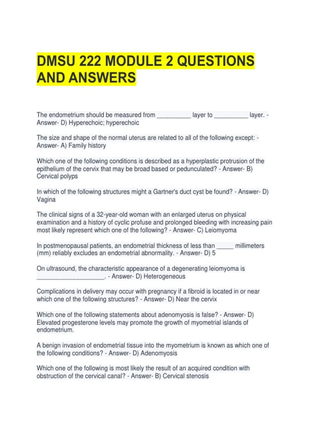 DMSU 222 MODULE 2 QUESTIONS AND ANSWERS