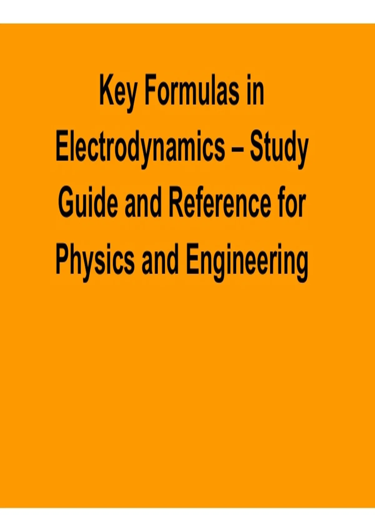 Download Key Formulas in Electrodynamics study guide and reference with solution designed to help students and engineers master essential electrodynamics equations, reinforce problem-solving skills, and excel in physics and engineering applications using accurate and up-to-date materials for the 2025/ 2026 academic year.